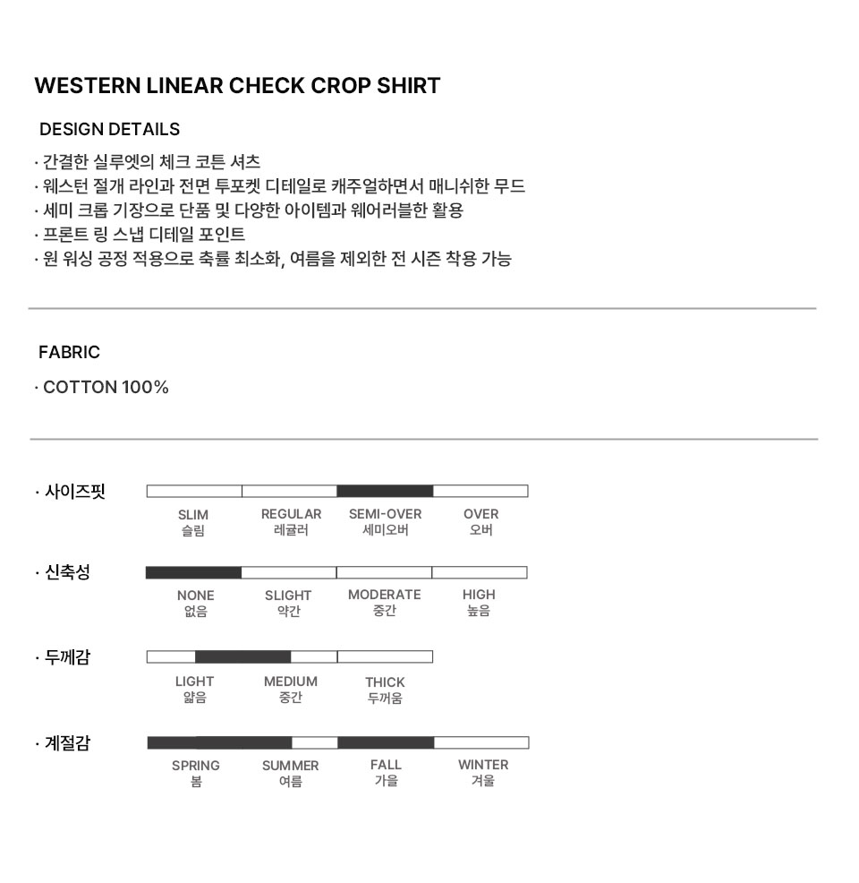웨스턴 리니어 체크 크롭 셔츠 [그레이]