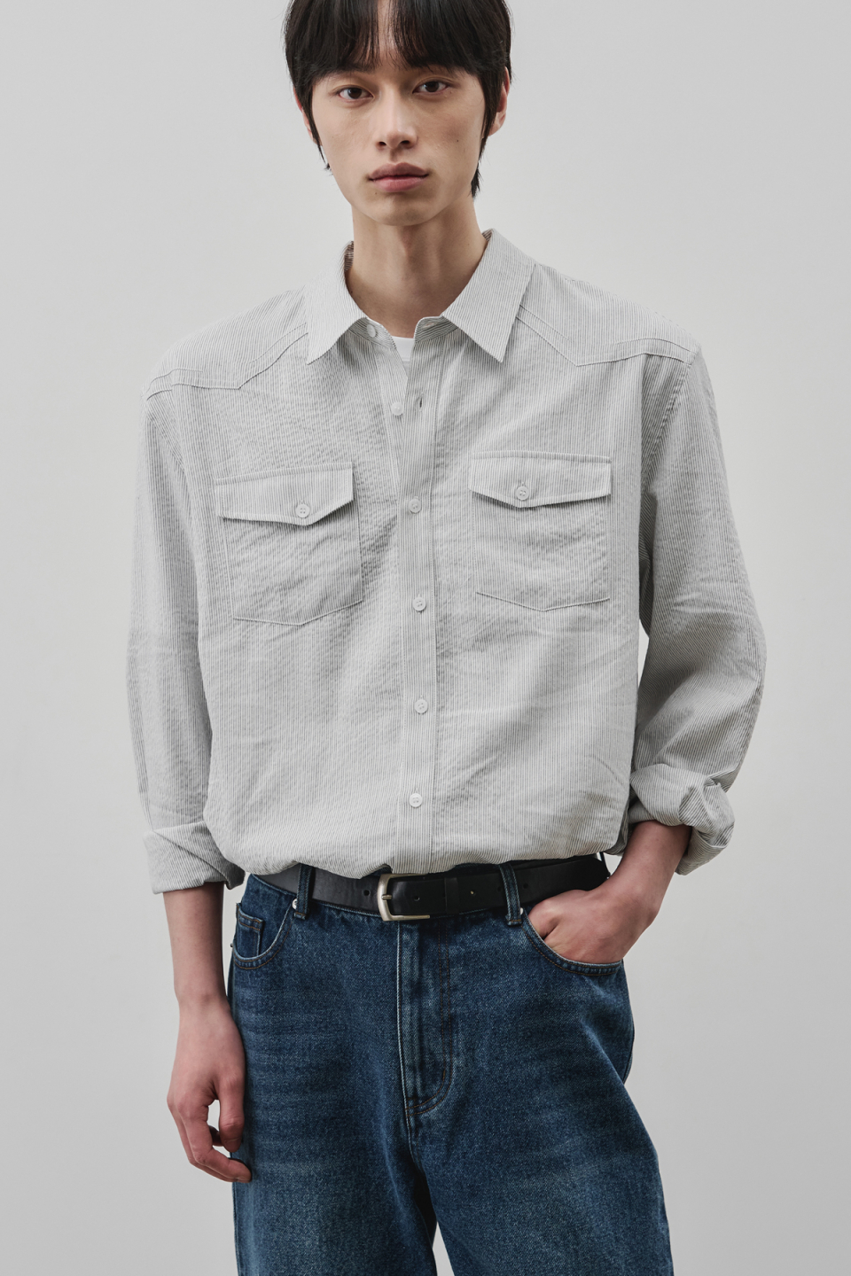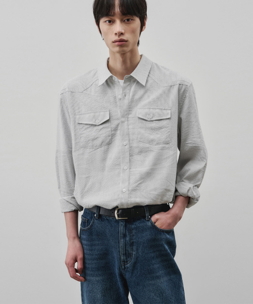 웨스턴 리니어 체크 크롭 셔츠 [그레이]