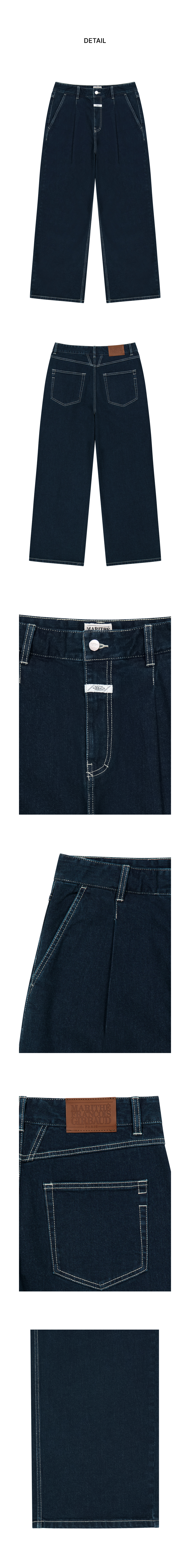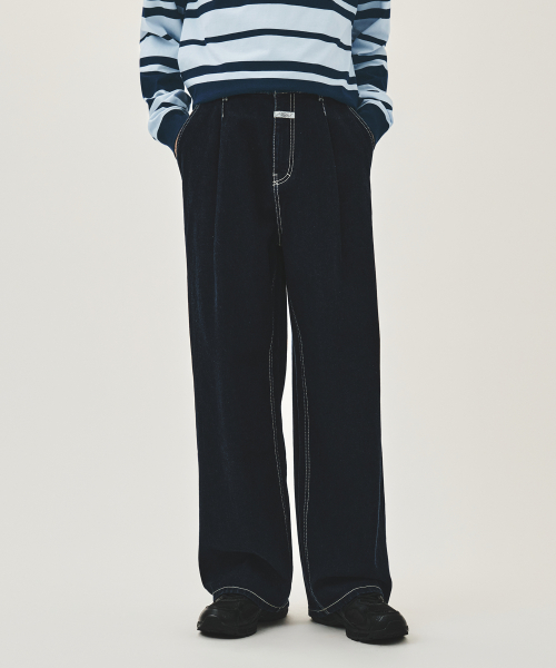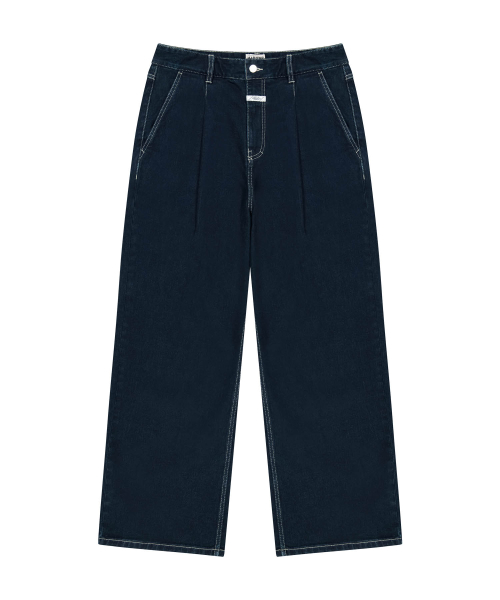 NEW M LOW-WAIST TUCK WIDE DENIM PANTS dark blue