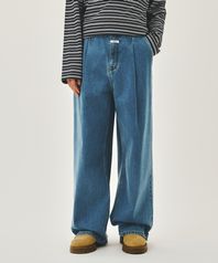 NEW M LOW-WAIST TUCK WIDE DENIM PANTS blue