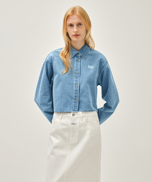W CROP DENIM SHIRT light blue