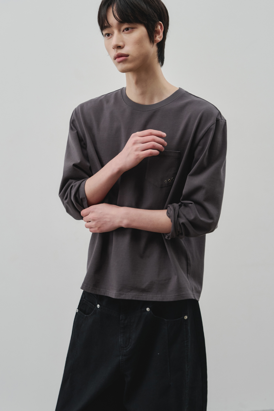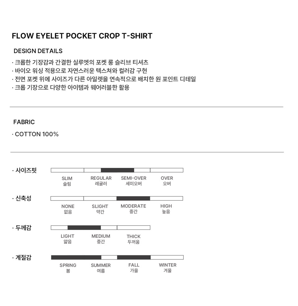 플로우 아일렛 포켓 크롭 티셔츠 [3COLOR]