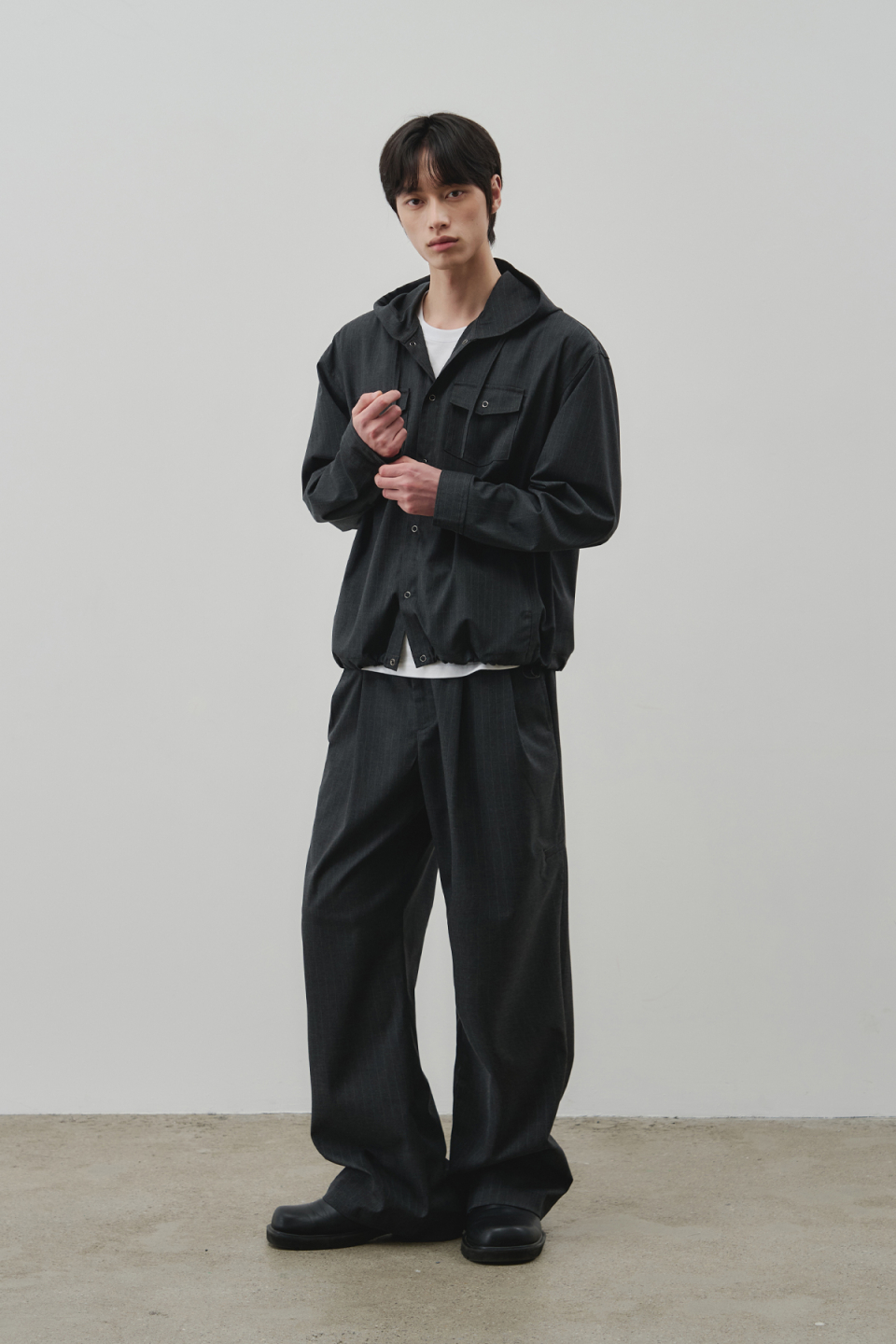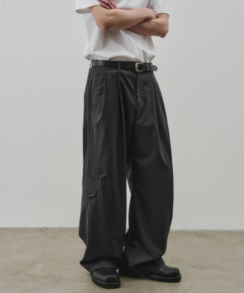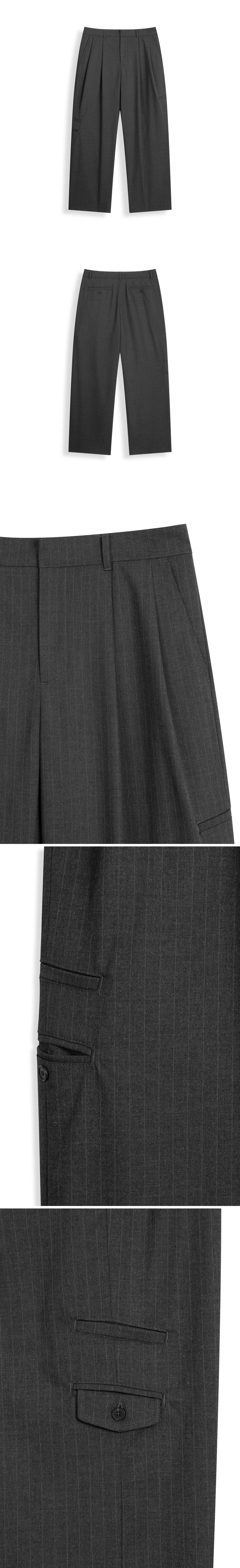 핀 스트라이프 유틸리티 와이드 슬랙스 [차콜]