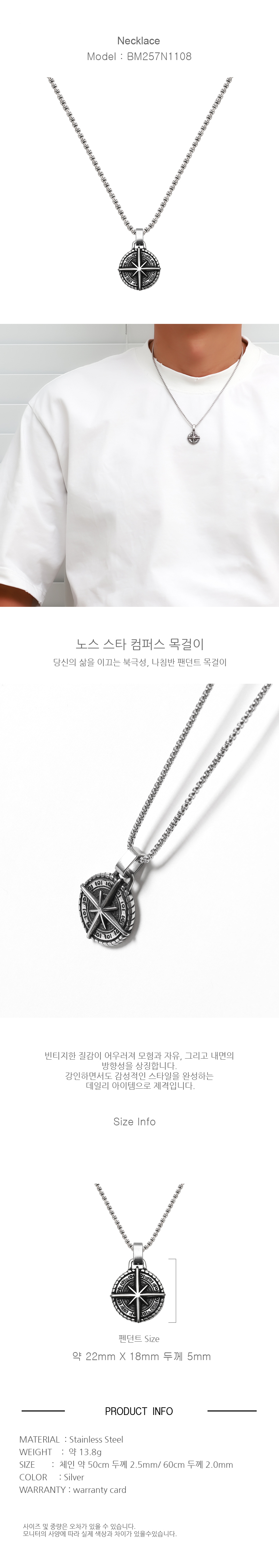 스몰 노스 스타 컴패스 BM257N1108 남자목걸이