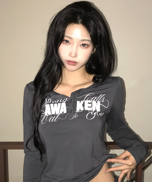 EL HENLEY NECK SLEEVE TEE(CHARCOAL)