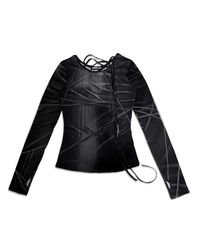 SCATTERED STRING KNIT PRINT TOP . BLACK