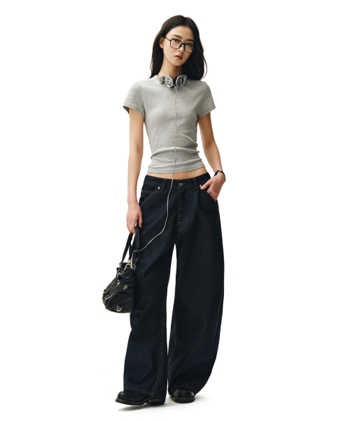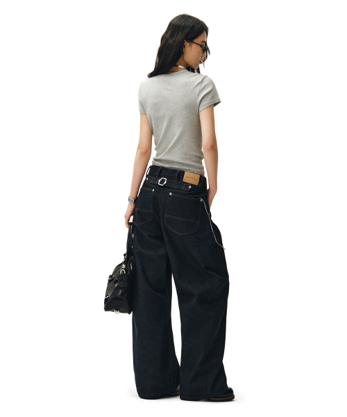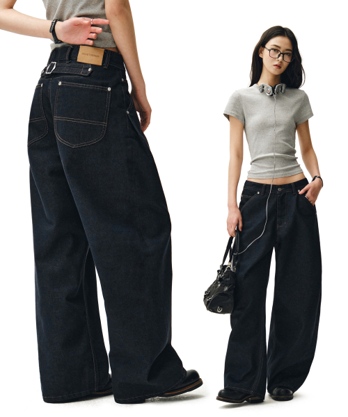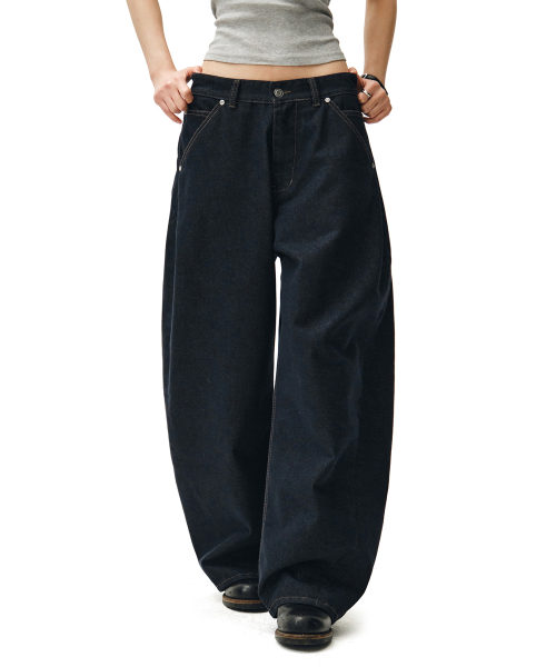 Cinchback Barrel Wide Leg Jeans DCWPT022CPINDIGO