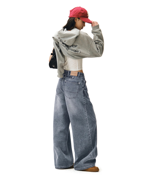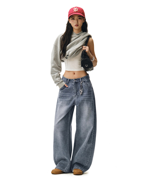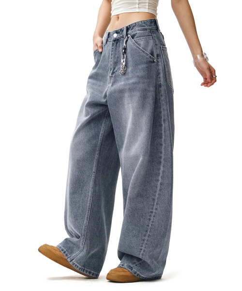 Cinchback Barrel Wide Leg Jeans DCWPT022BLUE