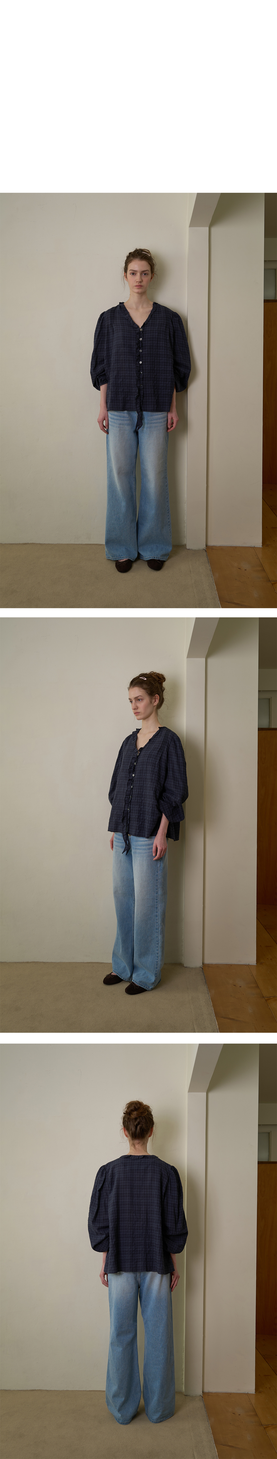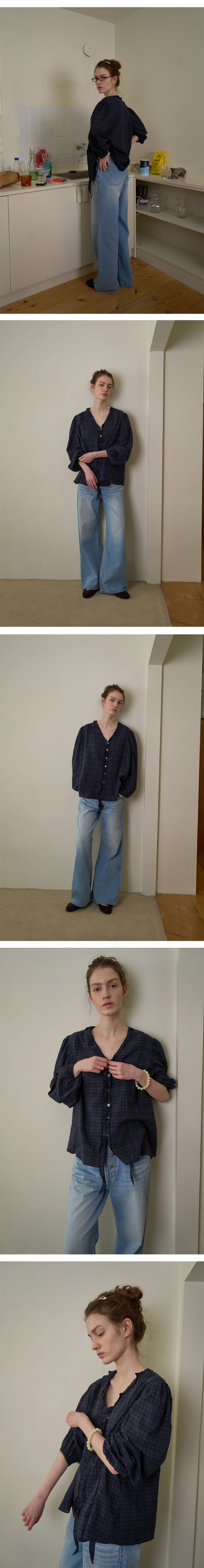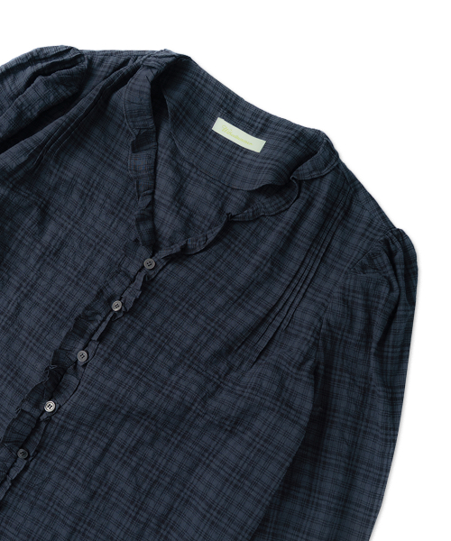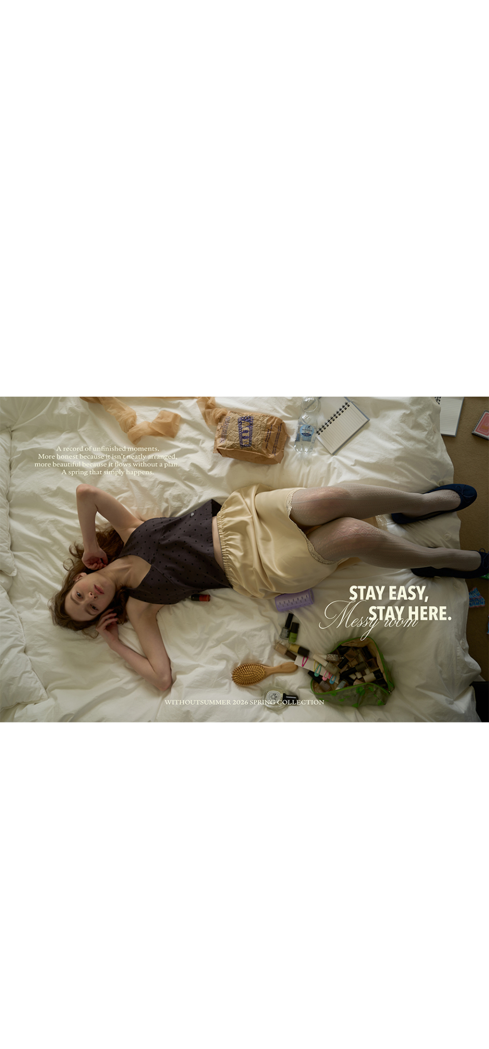 자연스럽게 흐르는 소재 위에 프릴과 숄더 셔링 디테일을 더해 여리하면서도 입체적인 실루엣을 완성했습니다.