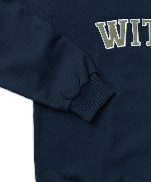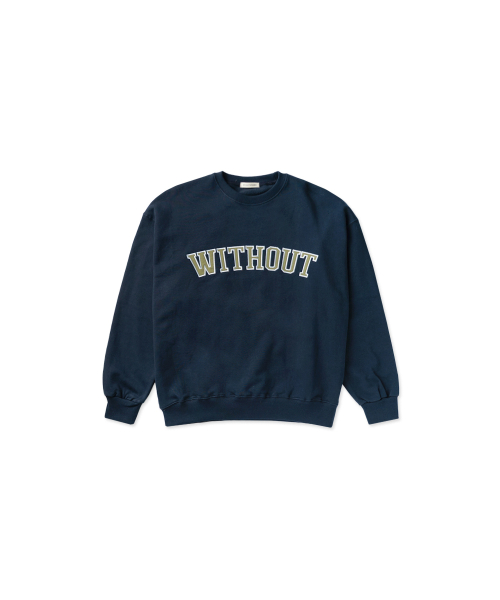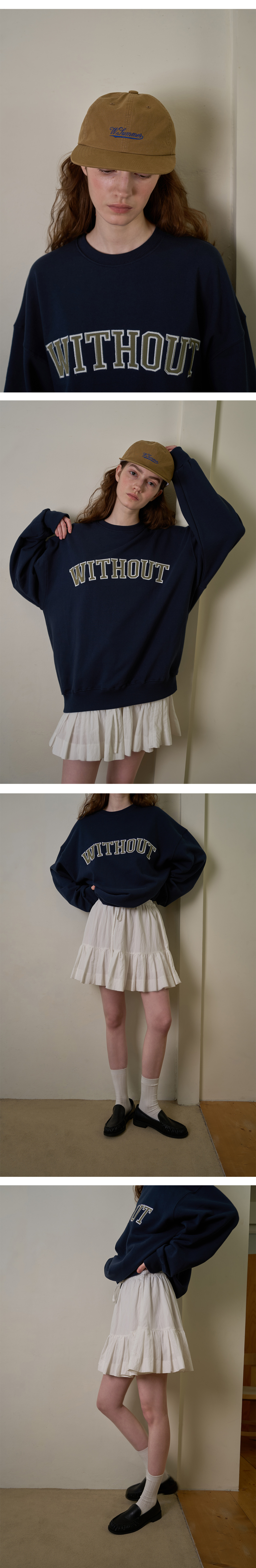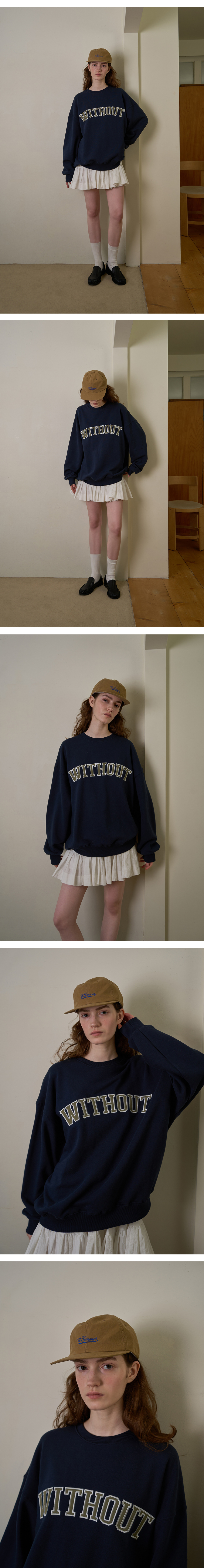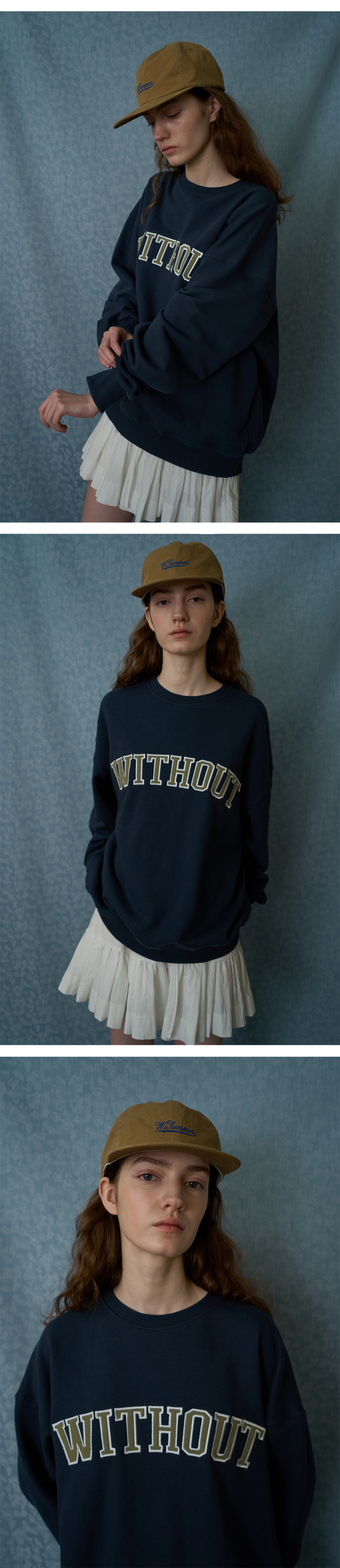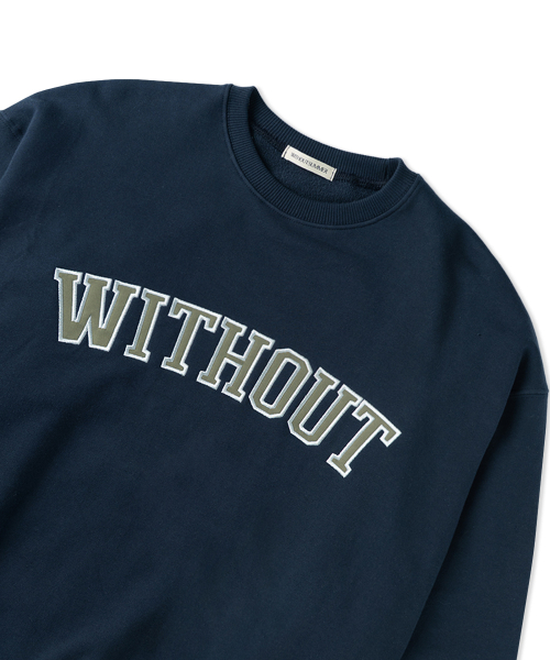 브랜드명에서 이어지는 ‘WITHOUT’ 자수 로고를 배색 디테일로 표현해 베이직한 아이템에 은은한 포인트를 더했습니다.