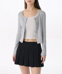 우먼즈 리브드 슬림 스쿱 넥 저지 가디건 [멜란지 그레이]