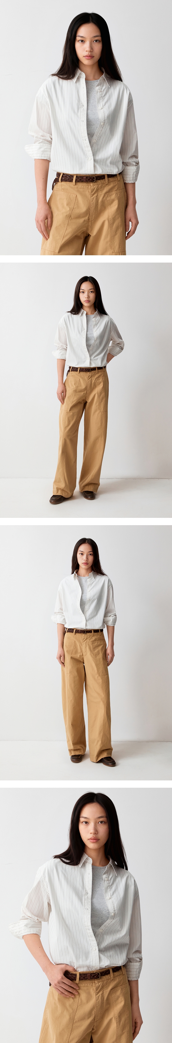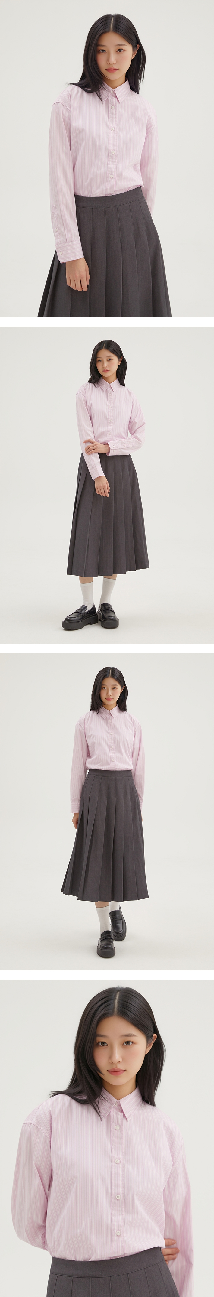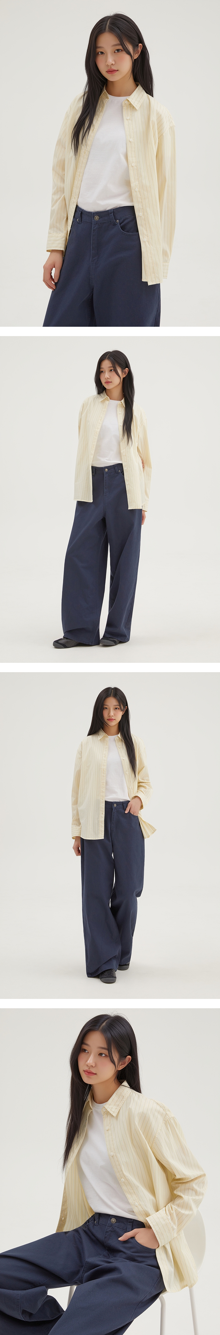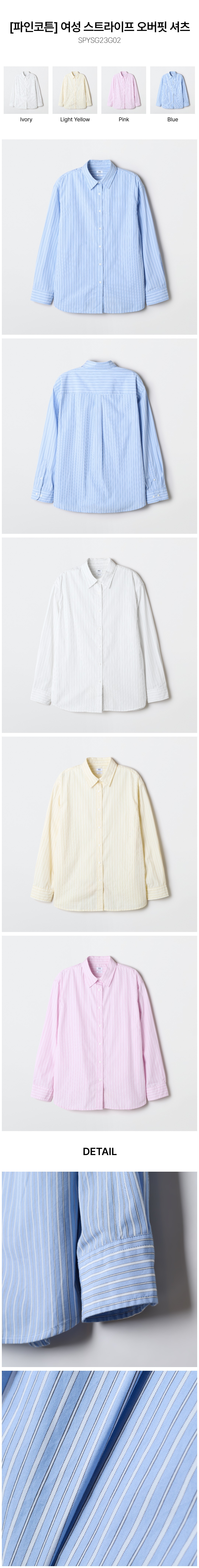 [파인코튼] 여성 스트라이프 오버핏 셔츠_SPYSG23G02