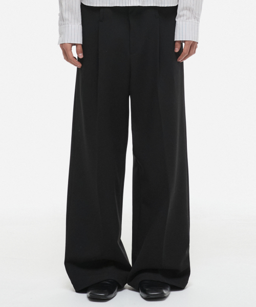 울 더블 루프 와이드 플레어 슬랙스 블랙