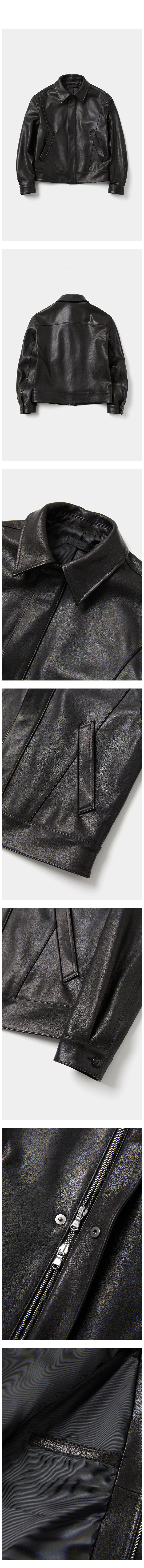 [프리미엄] 람포 하이넥 베지터블 램스킨 자켓 블랙