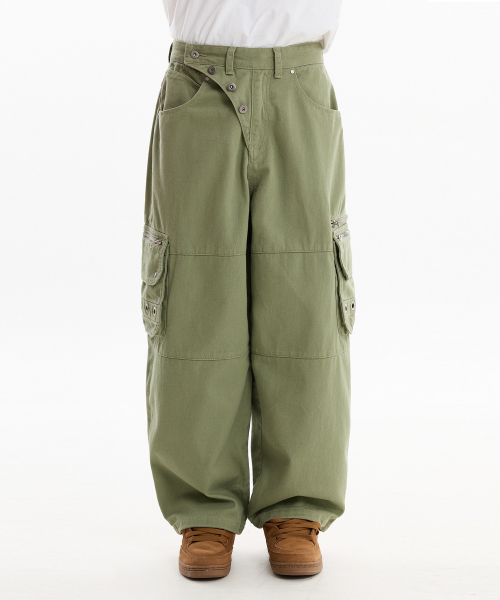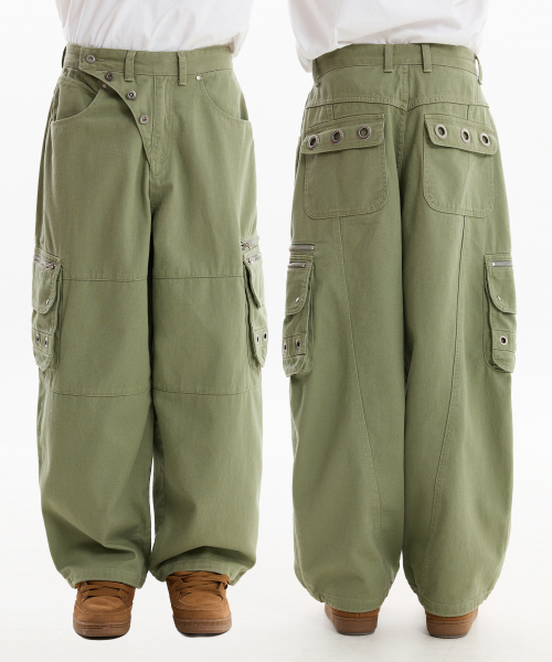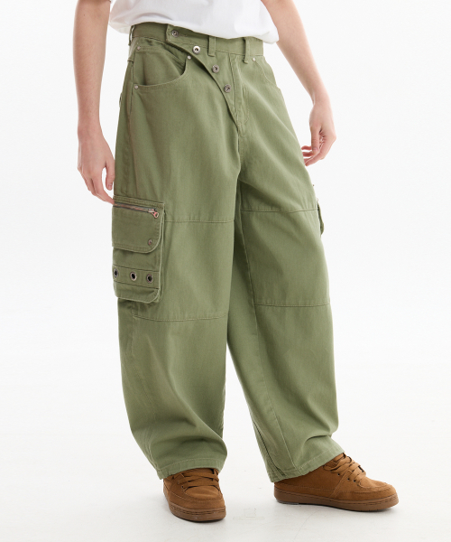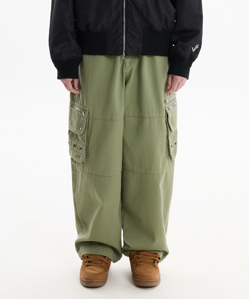 [지꾸ZGGU PICK] 절개 코튼 카고 밴딩 팬츠 블랙
