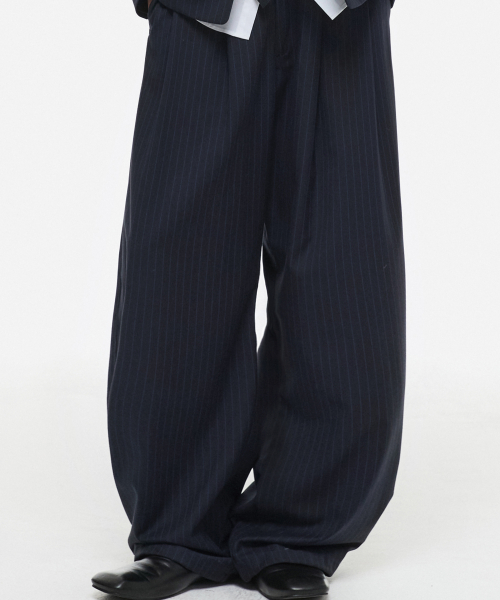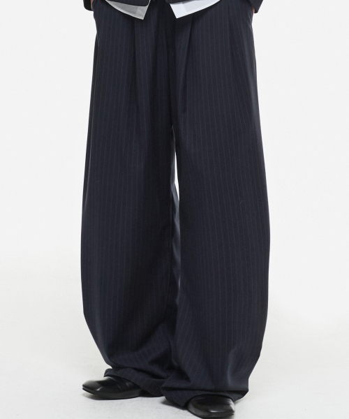 멀티 스트라이프 커브드 슬랙스 네이비