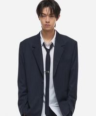 멀티 스트라이프 싱글 블레이저 네이비