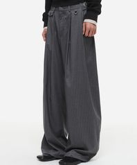 멀티 스트라이프 커브드 슬랙스 그레이