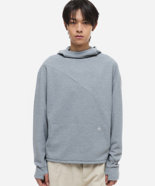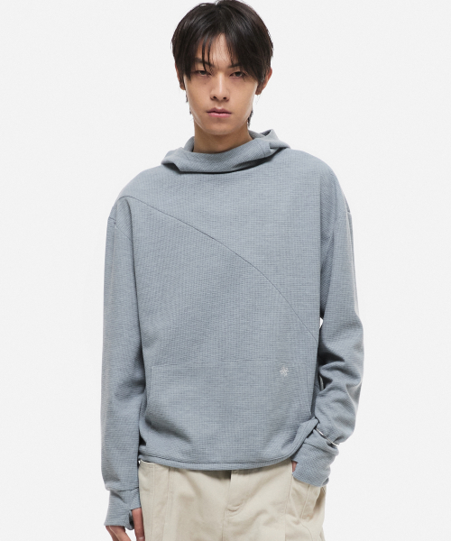 와플 후디드 핑거홀 롱슬리브 블루그레이