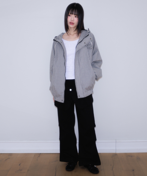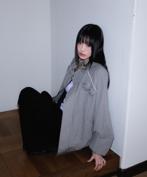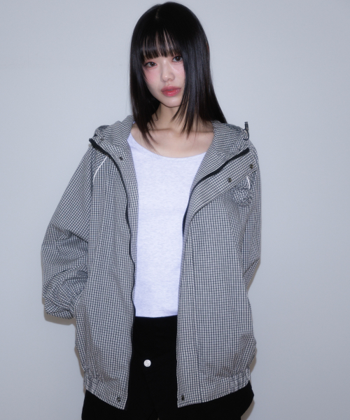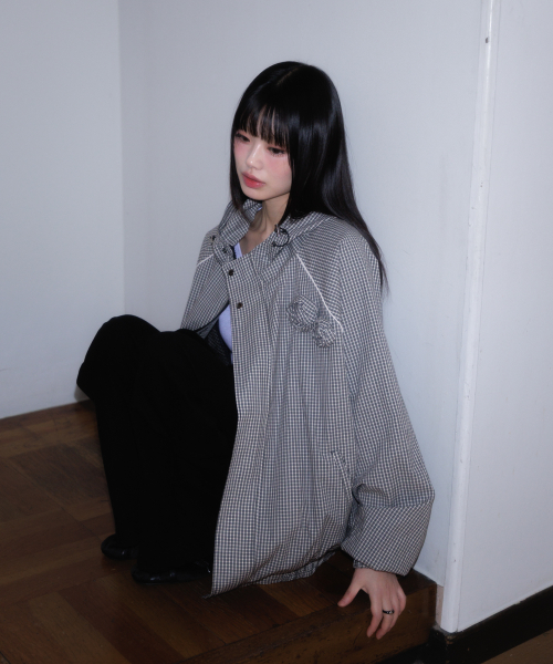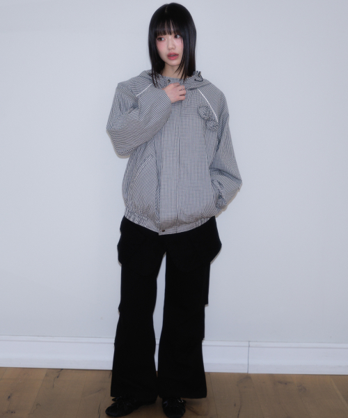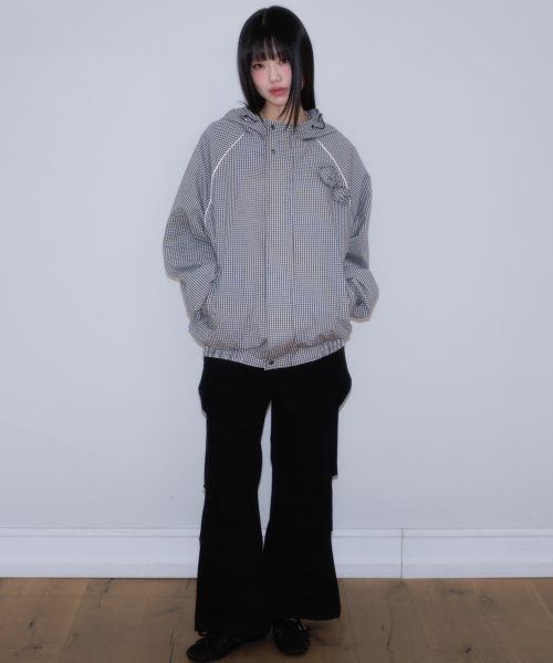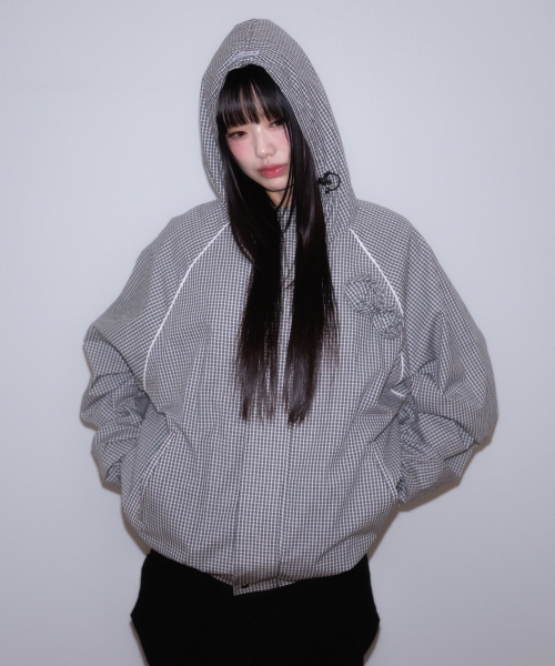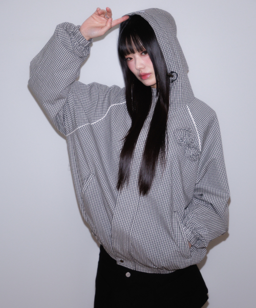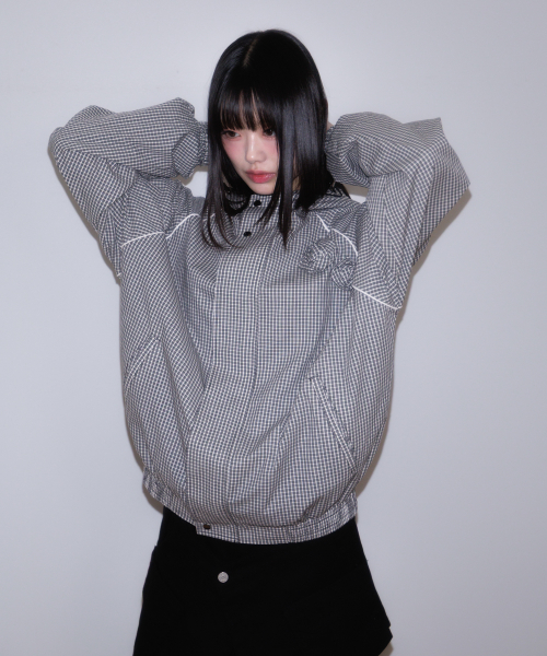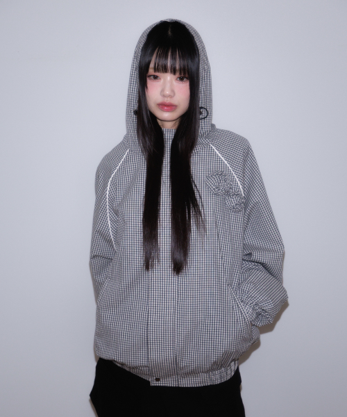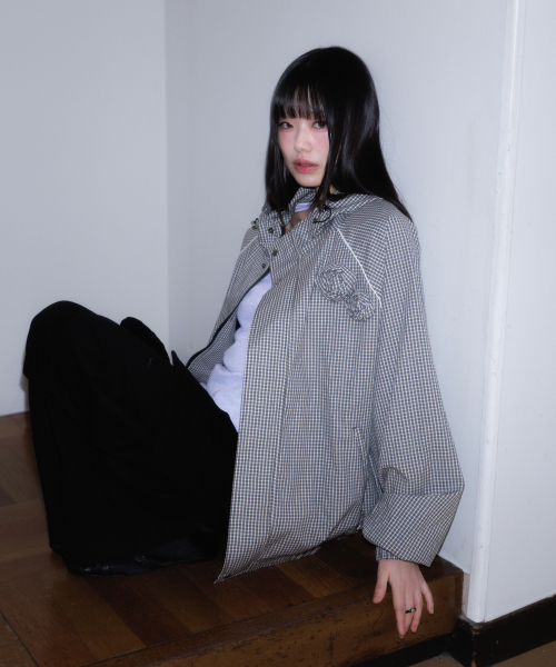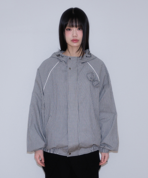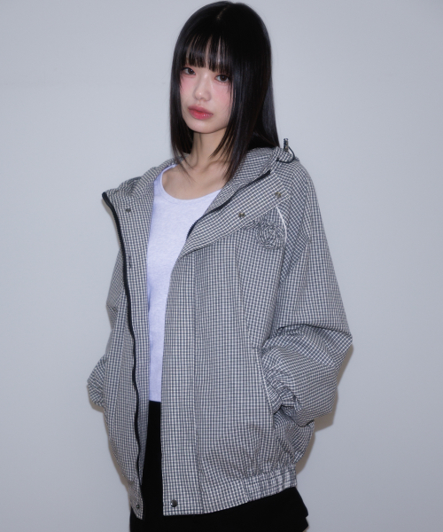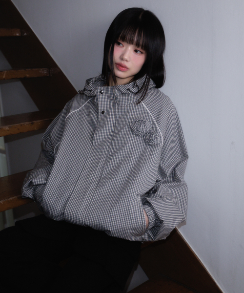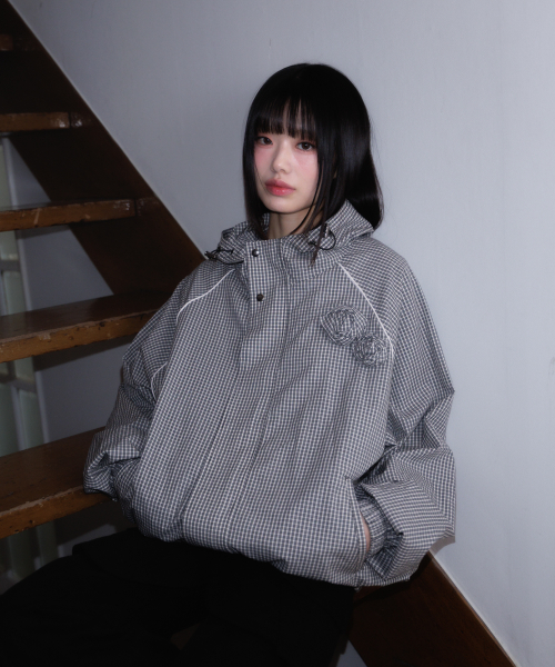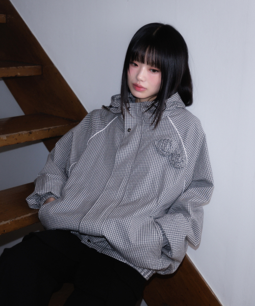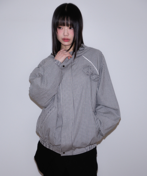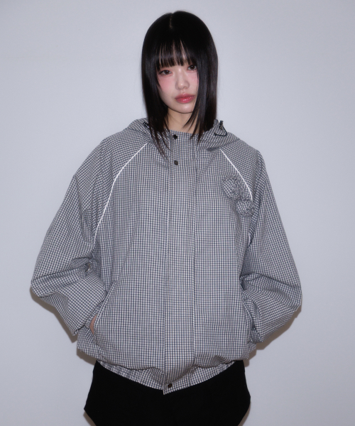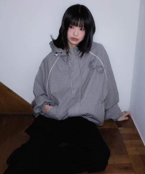 Rose Corsage Check Windbreaker [Black]