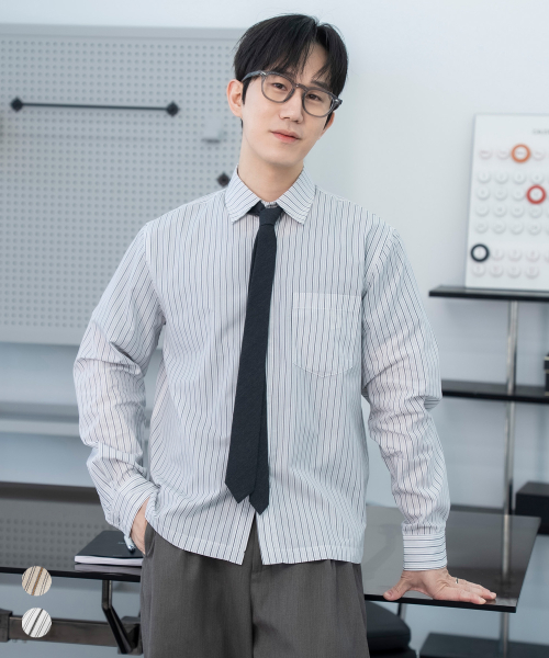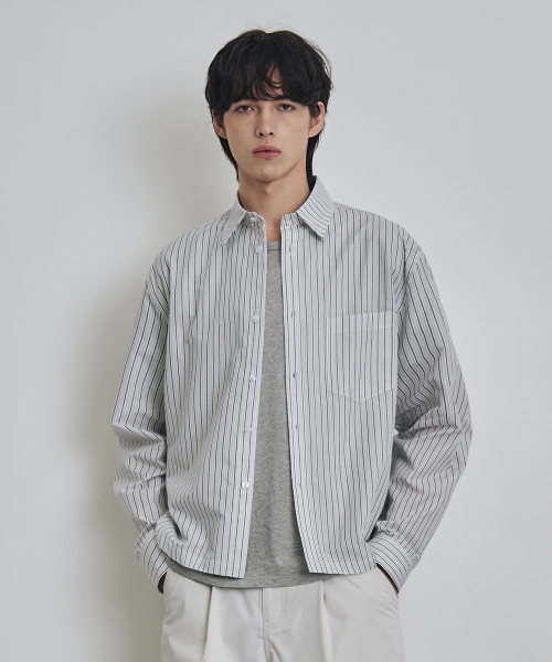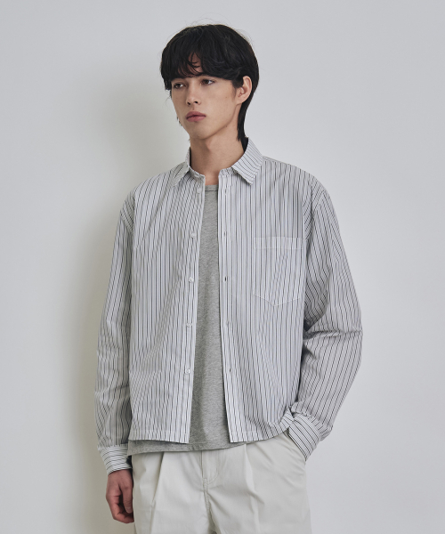 [COCLX삭형] 스트라이프 세미 크롭 롱 슬리브 셔츠 2 COLOR COOSSH200