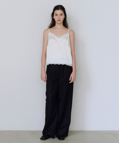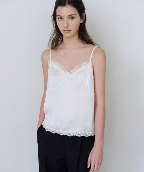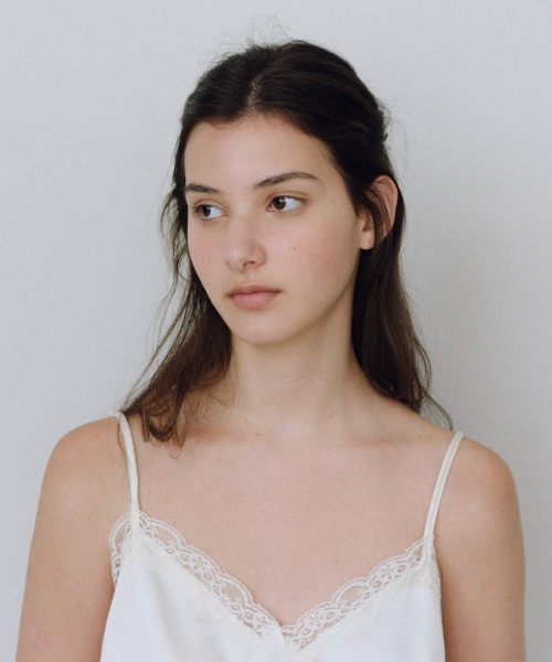 - 넥 라인과 밑단에는 섬세한 레이스 디테일을 더해 여성스럽고 은은한 무드를 살렸으며, 얇은 스트랩 디자인으로 어깨 기장 조절이 가능합니다.