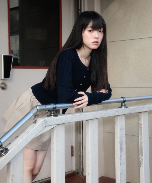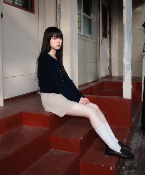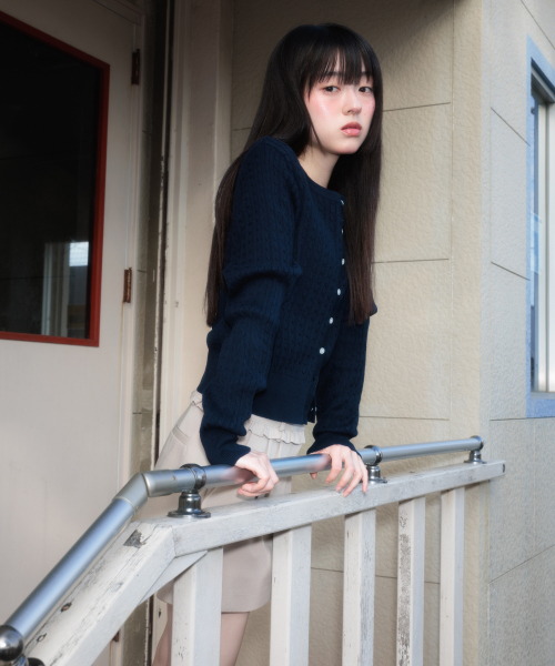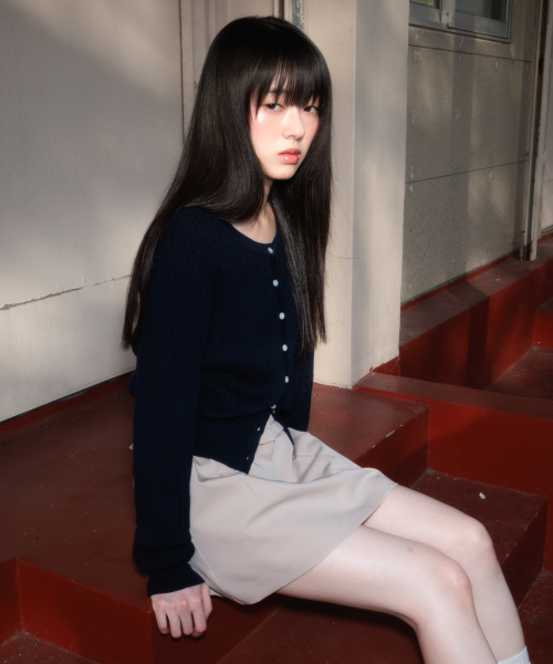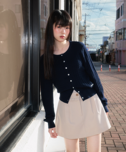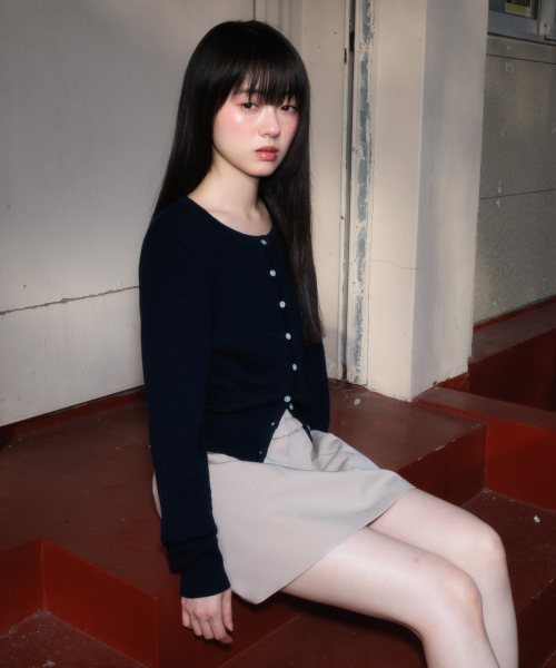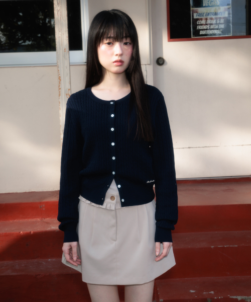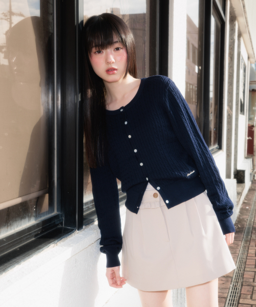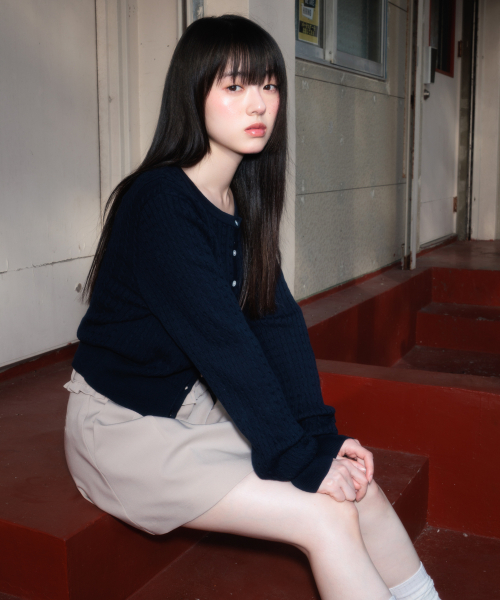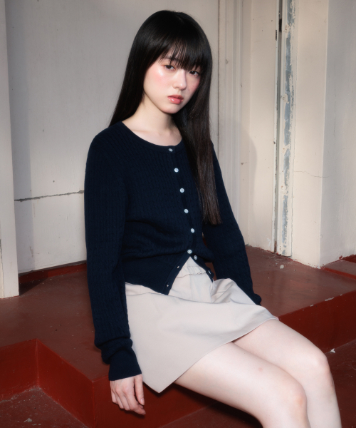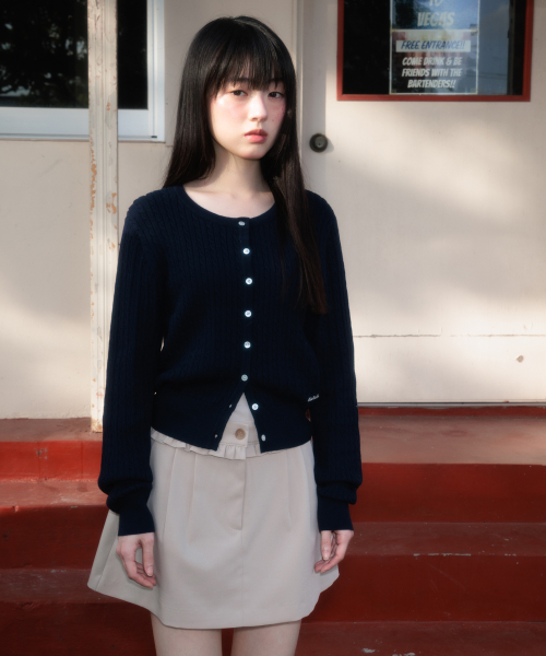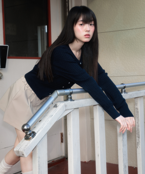 Cable Knit Basic Cardigan [Navy]