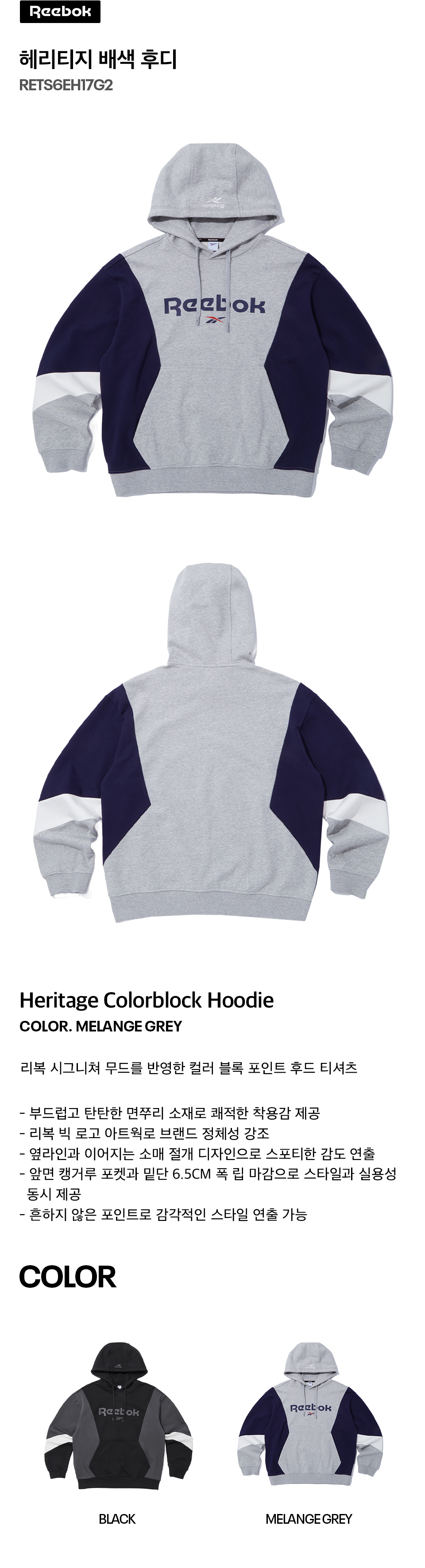 헤리티지 배색 후디 - 멜란지 그레이