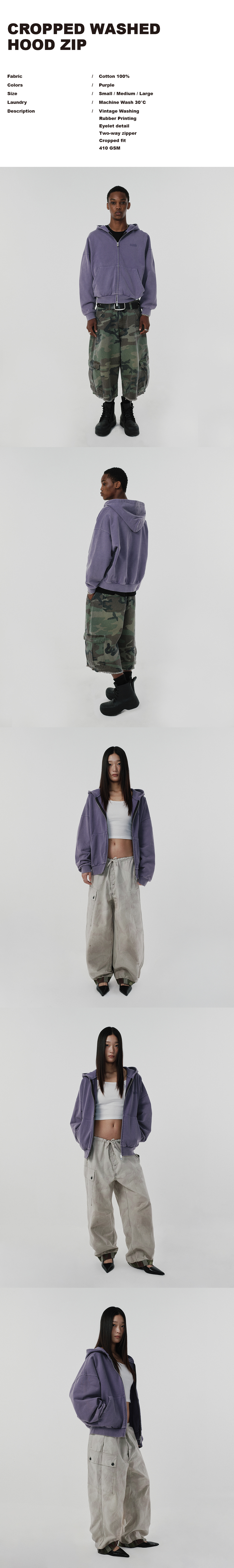 CROPPED WASHED HOOD ZIP UP [PURPLE]