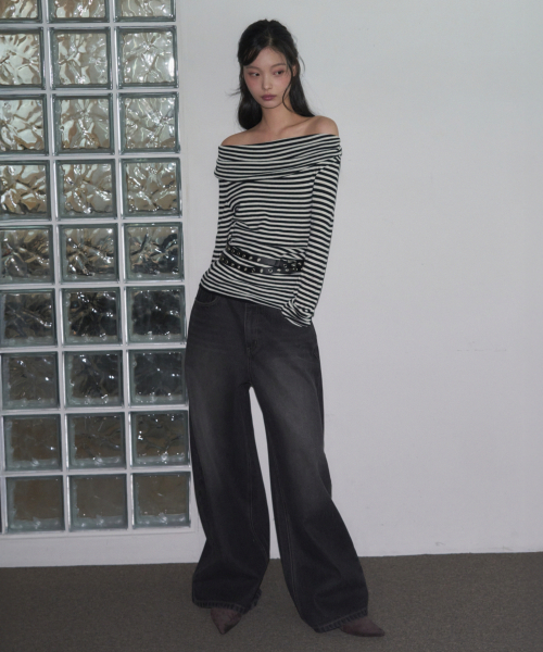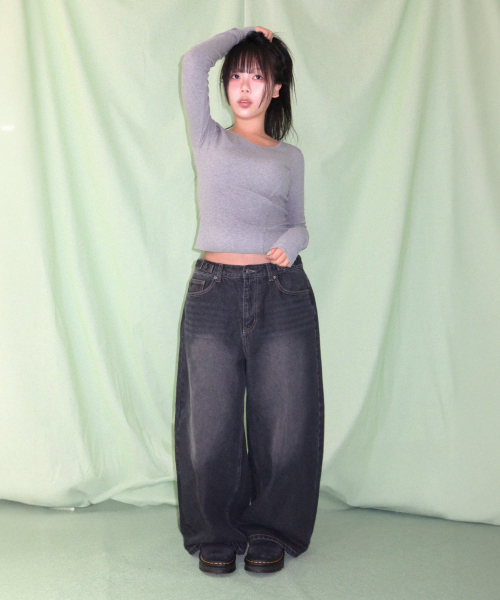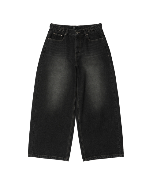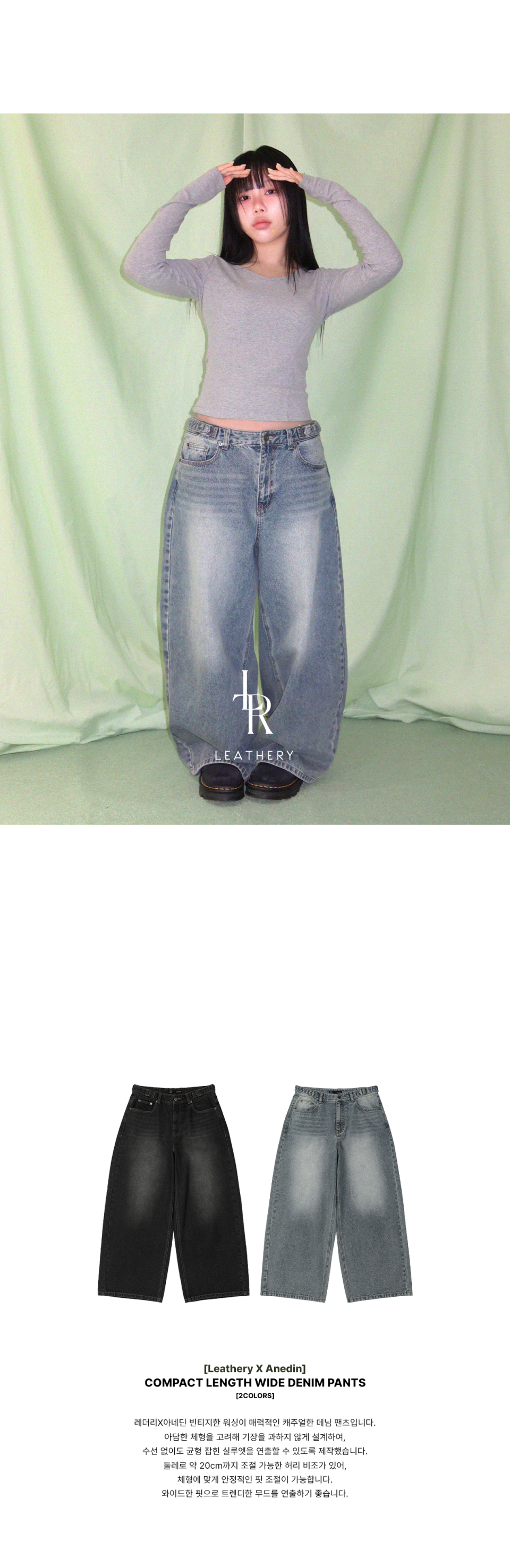 [레더리X아네딘] 컴팩트 렝스 와이드 데님 팬츠 [BLACK]