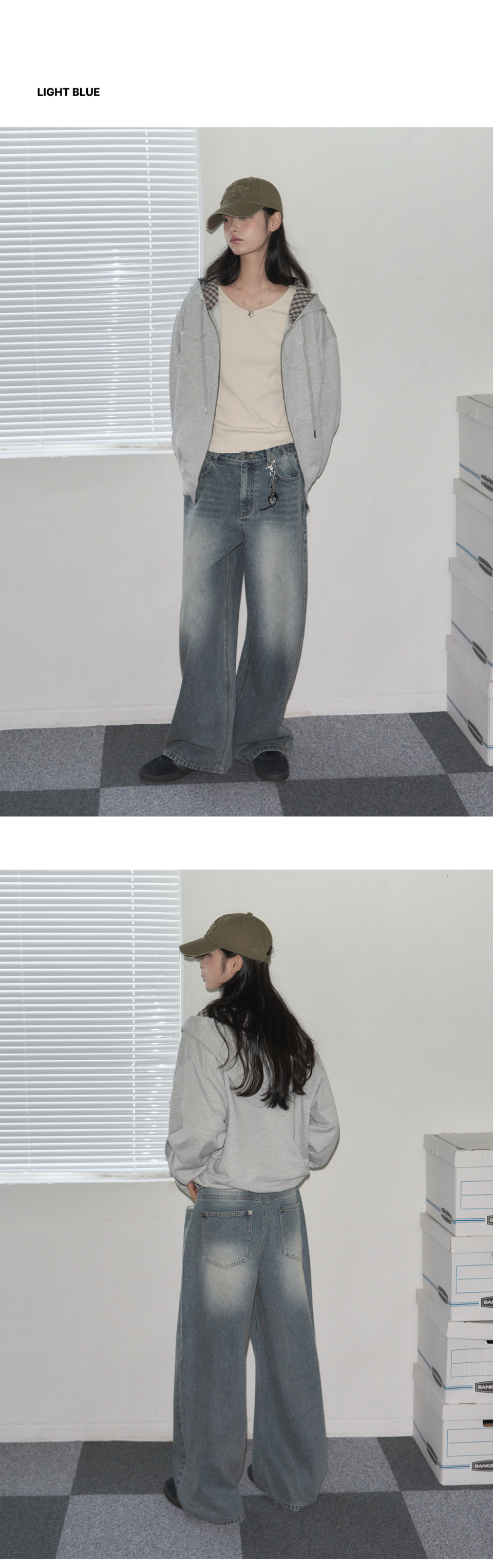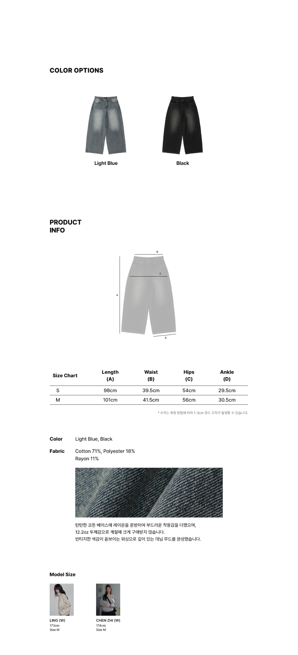 [레더리X아네딘] 컴팩트 렝스 와이드 데님 팬츠 [LIGHT BLUE]