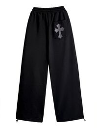 크로스 자수 밴딩 핀턱 와이드 롱팬츠 블랙