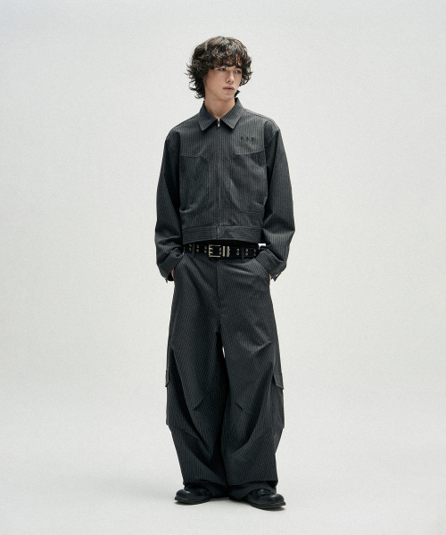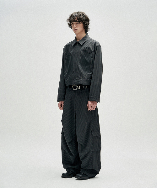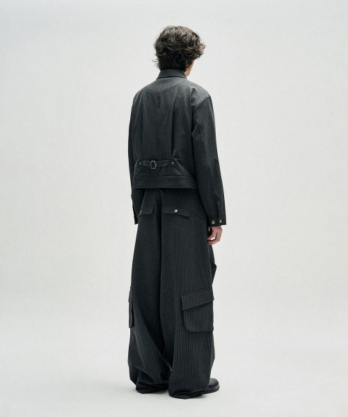 TR Stripe Cinch Back Crop Jacket - Charcoal