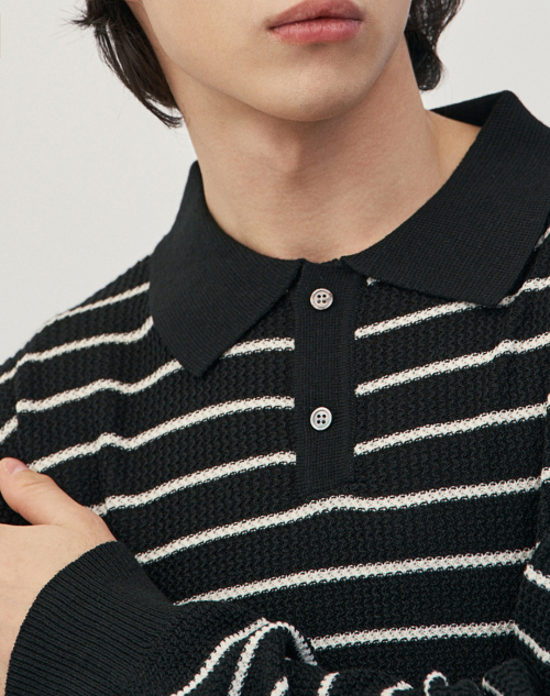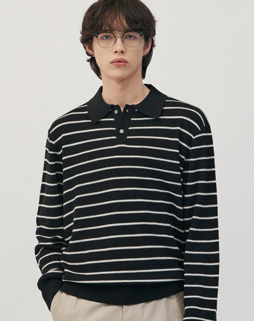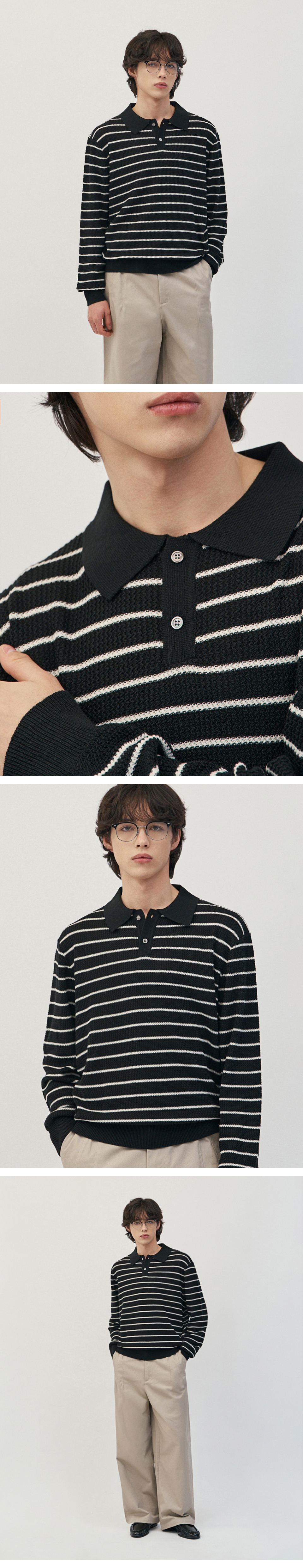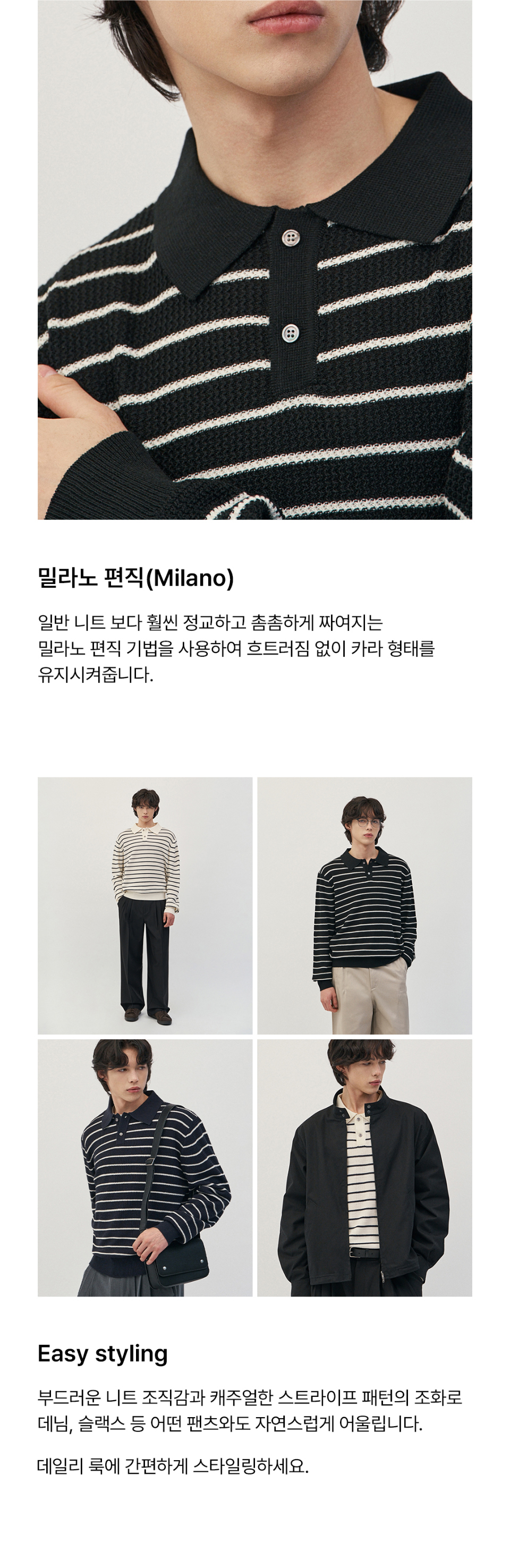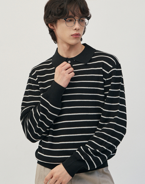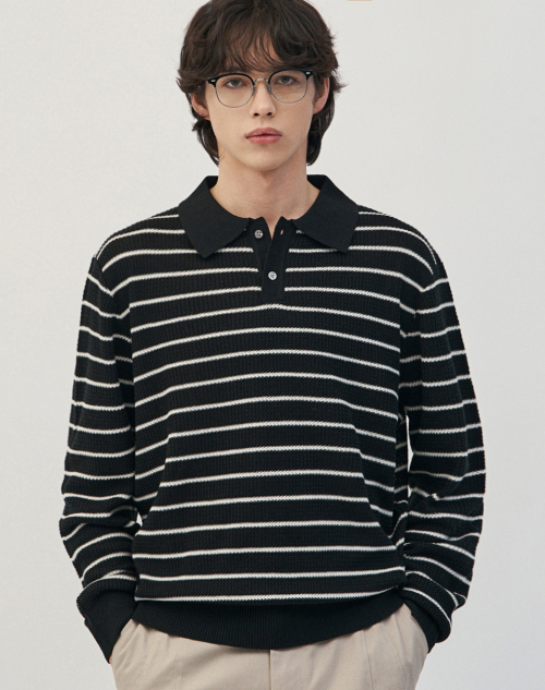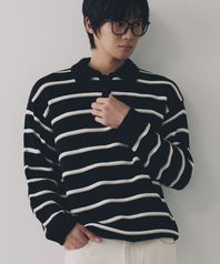 이지온 세미 오버핏 스트라이프 카라 니트 [블랙]