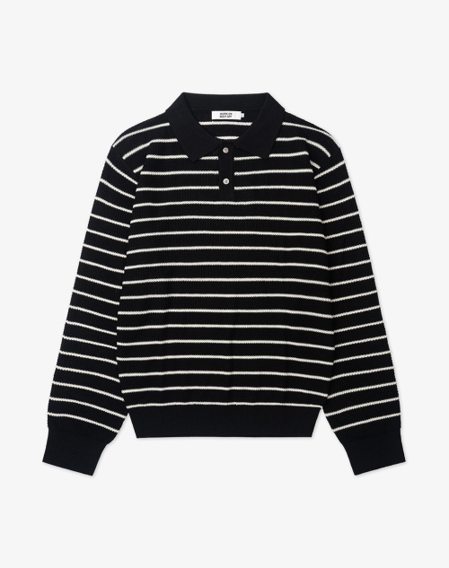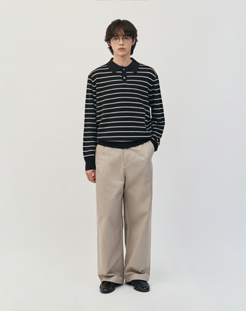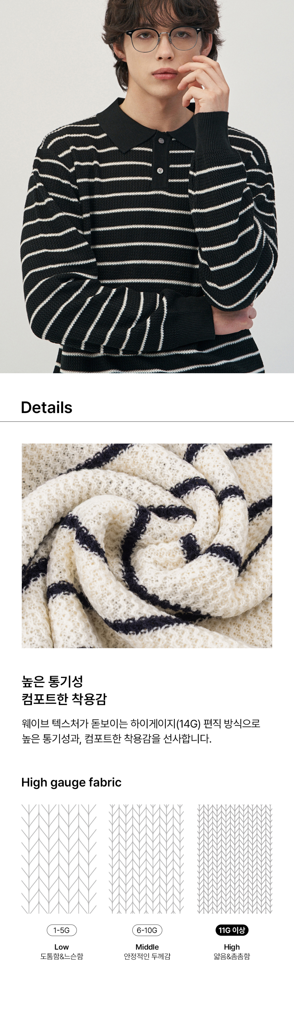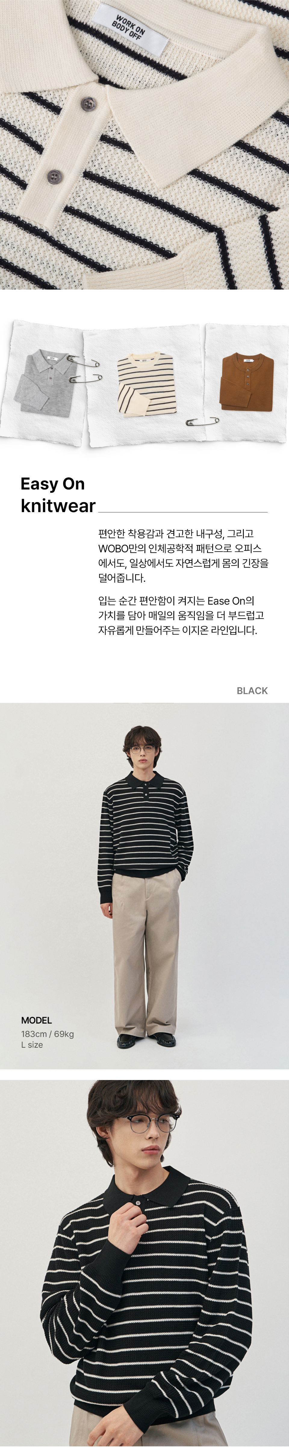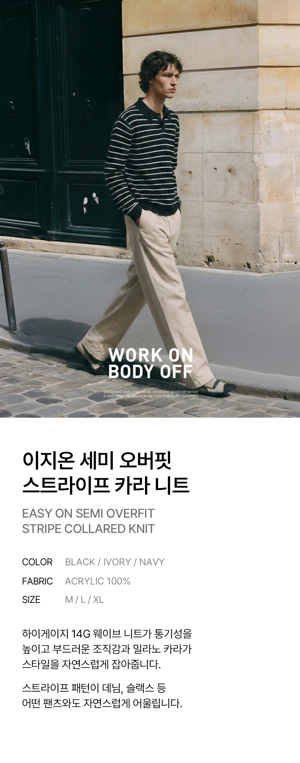 이지온 세미 오버핏 스트라이프 카라 니트 [블랙]