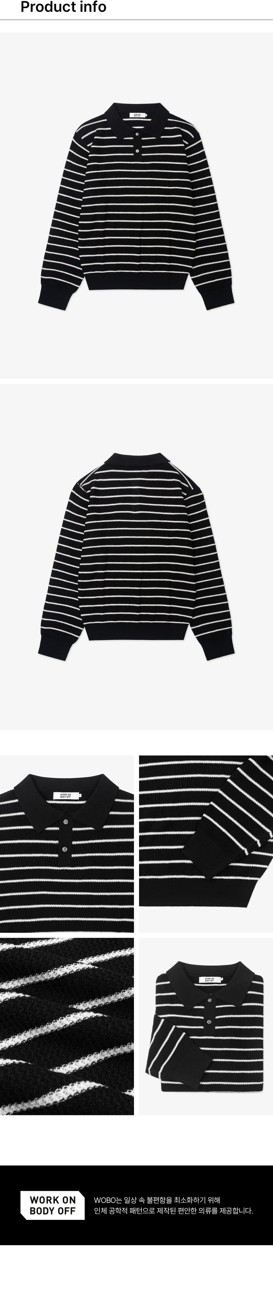 멀티 배색 카라 스트라이프 니트 티셔츠 [블랙]