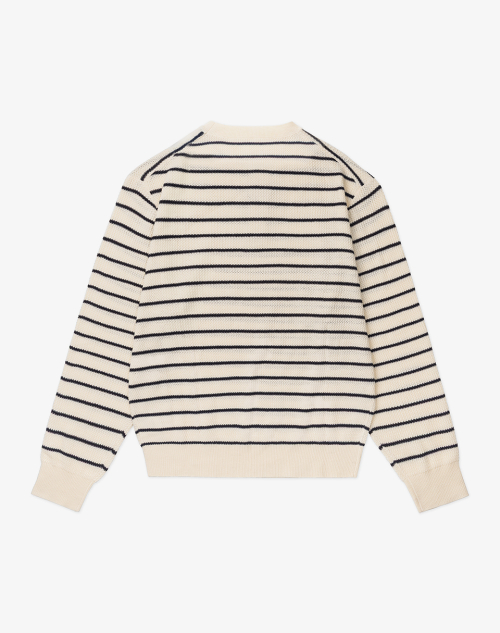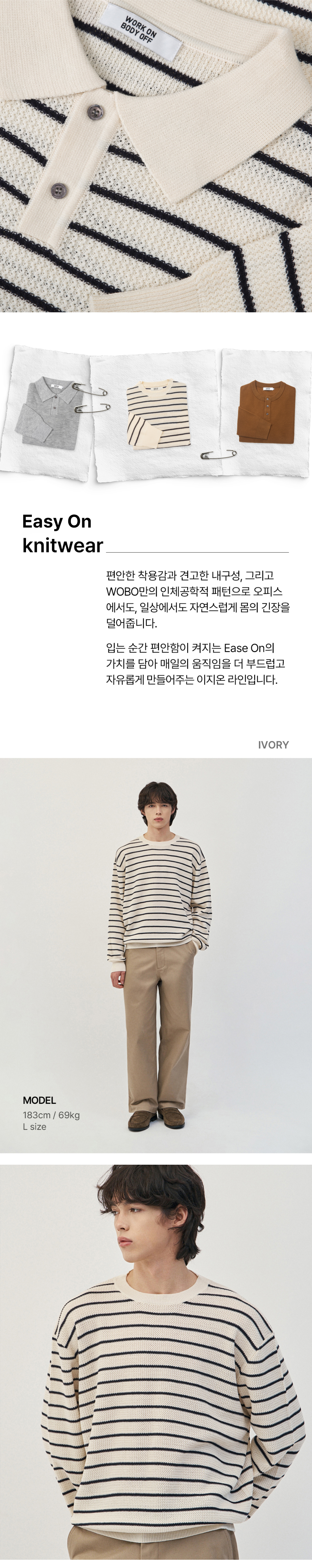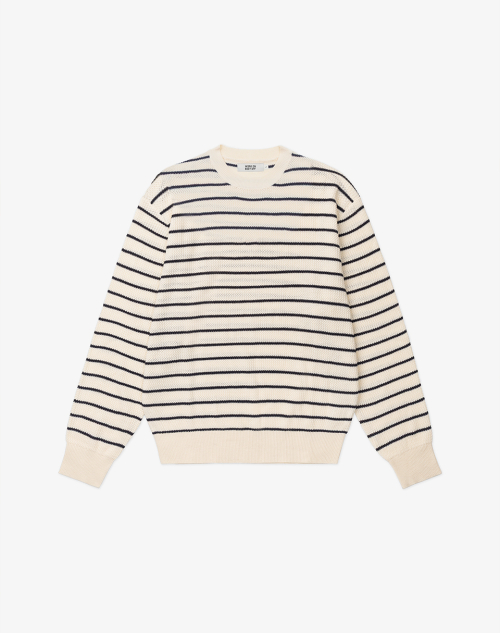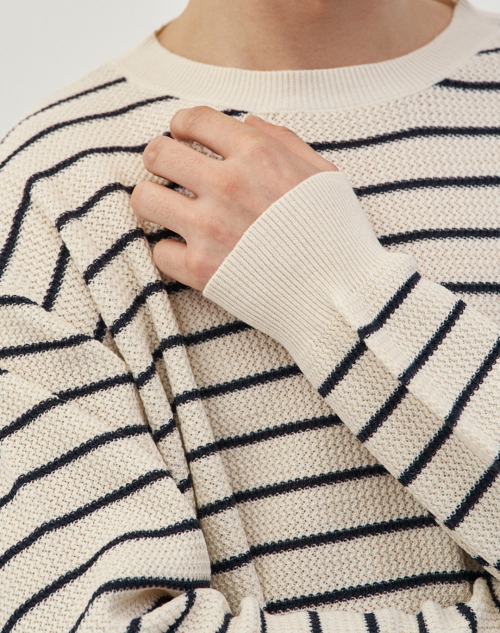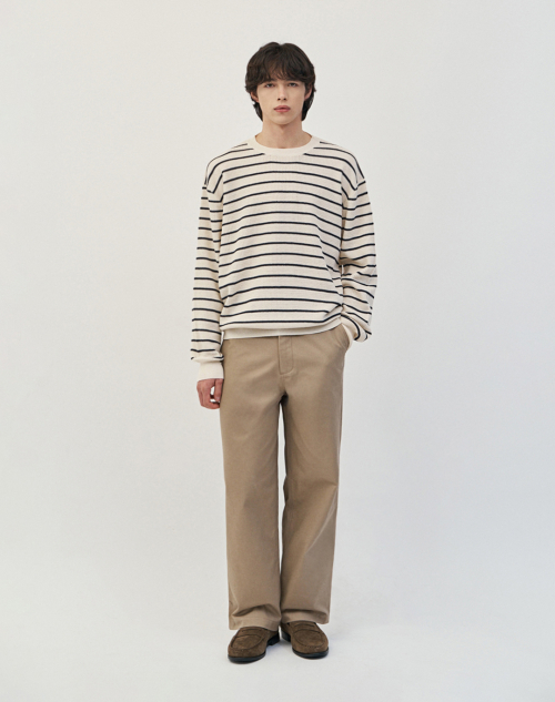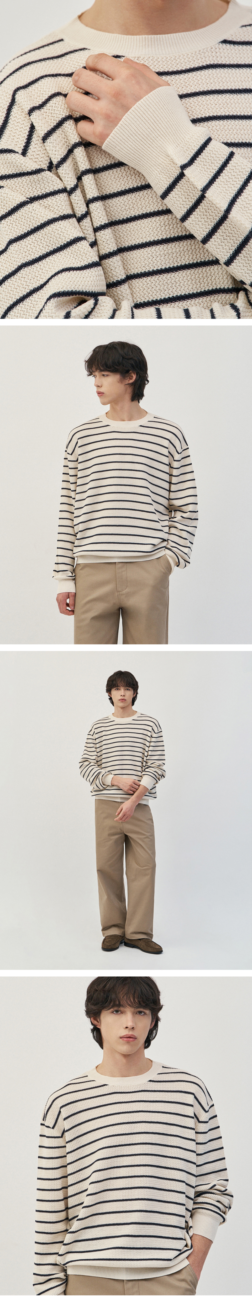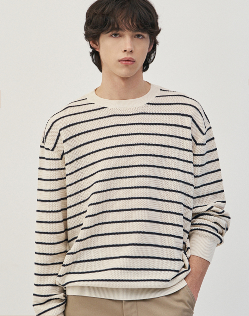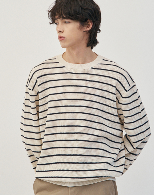 이지온 세미 오버핏 스트라이프 라운드넥 니트 [아이보리]
