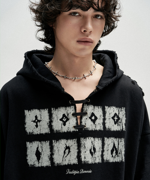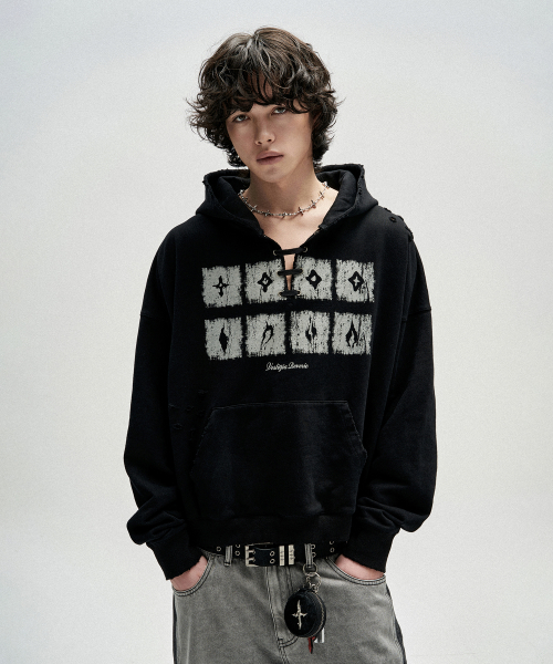 Dying Ember Slit Pullover Hood - Black