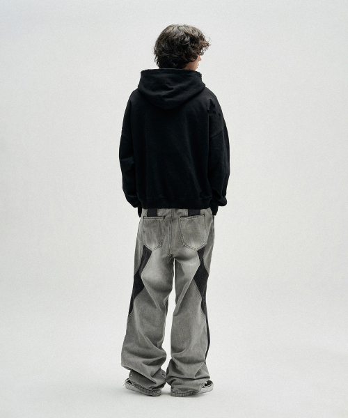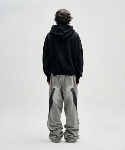 Two Tone Curved Denim Pants - Black