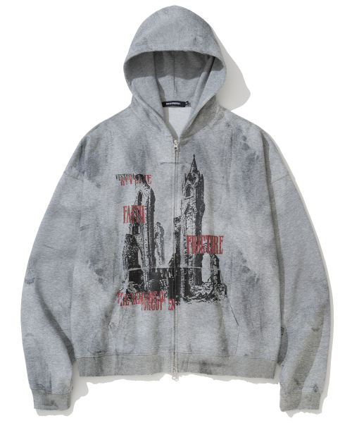 Cathedral Oil Washed Hood Zip Up - Grey