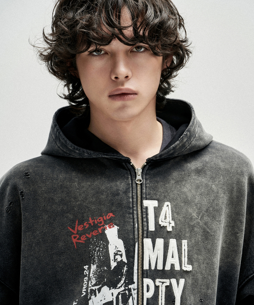 Cathedral Oil Washed Hood Zip Up - Grey