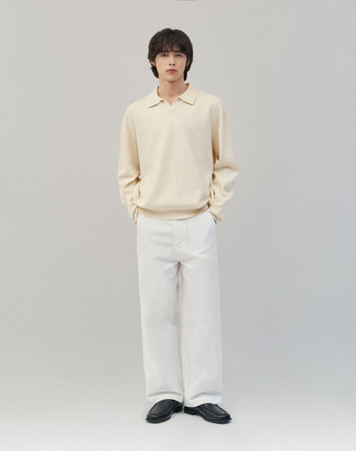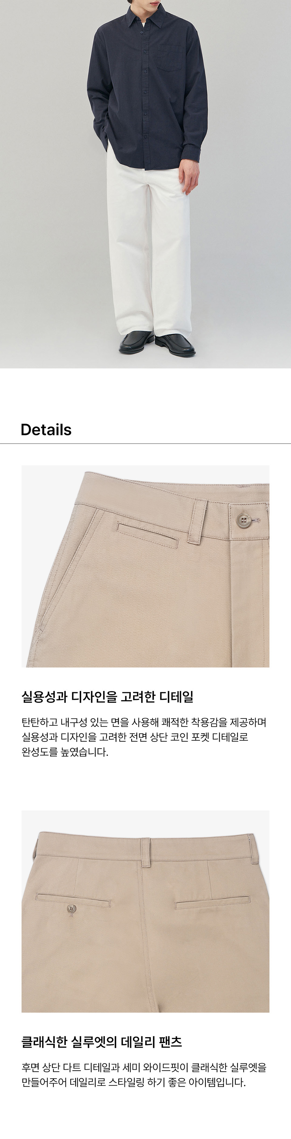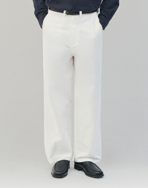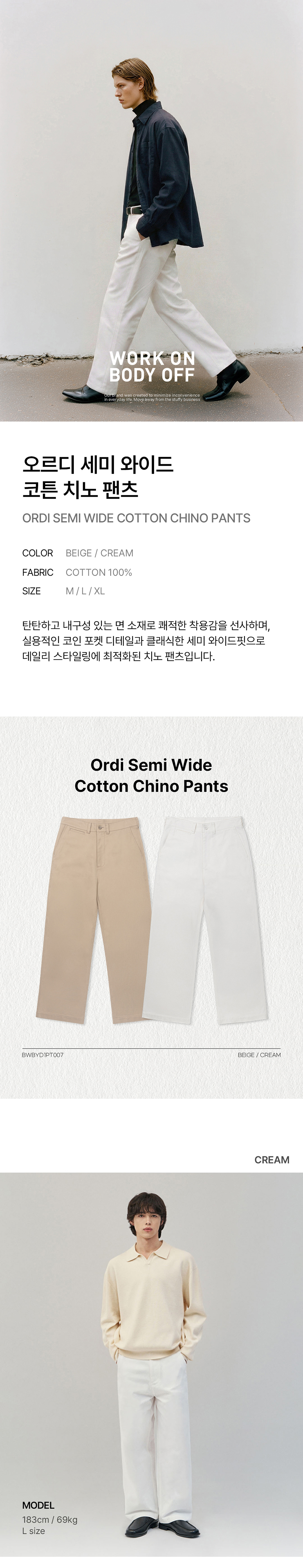 오르디 세미 와이드 코튼 치노 팬츠 [크림]