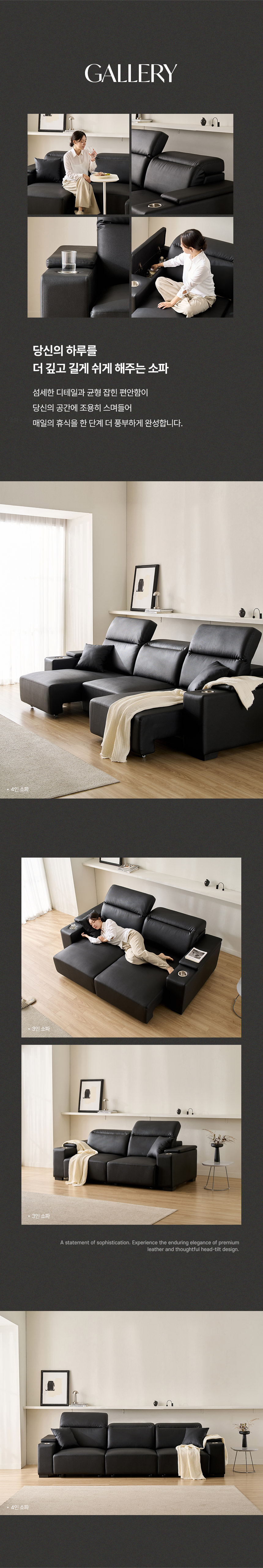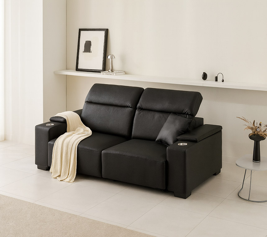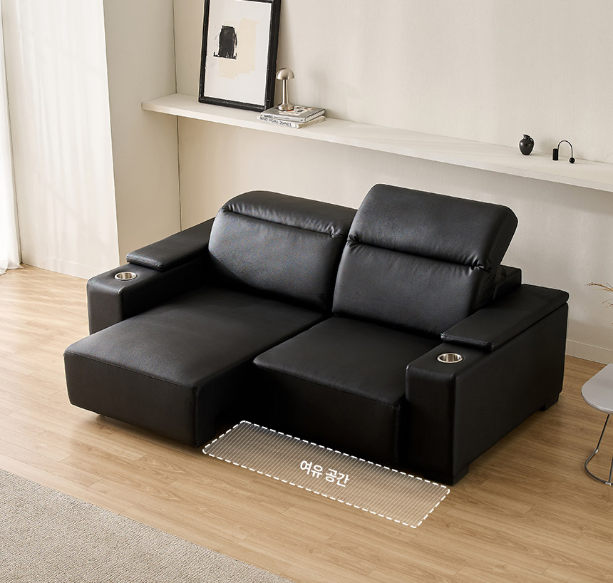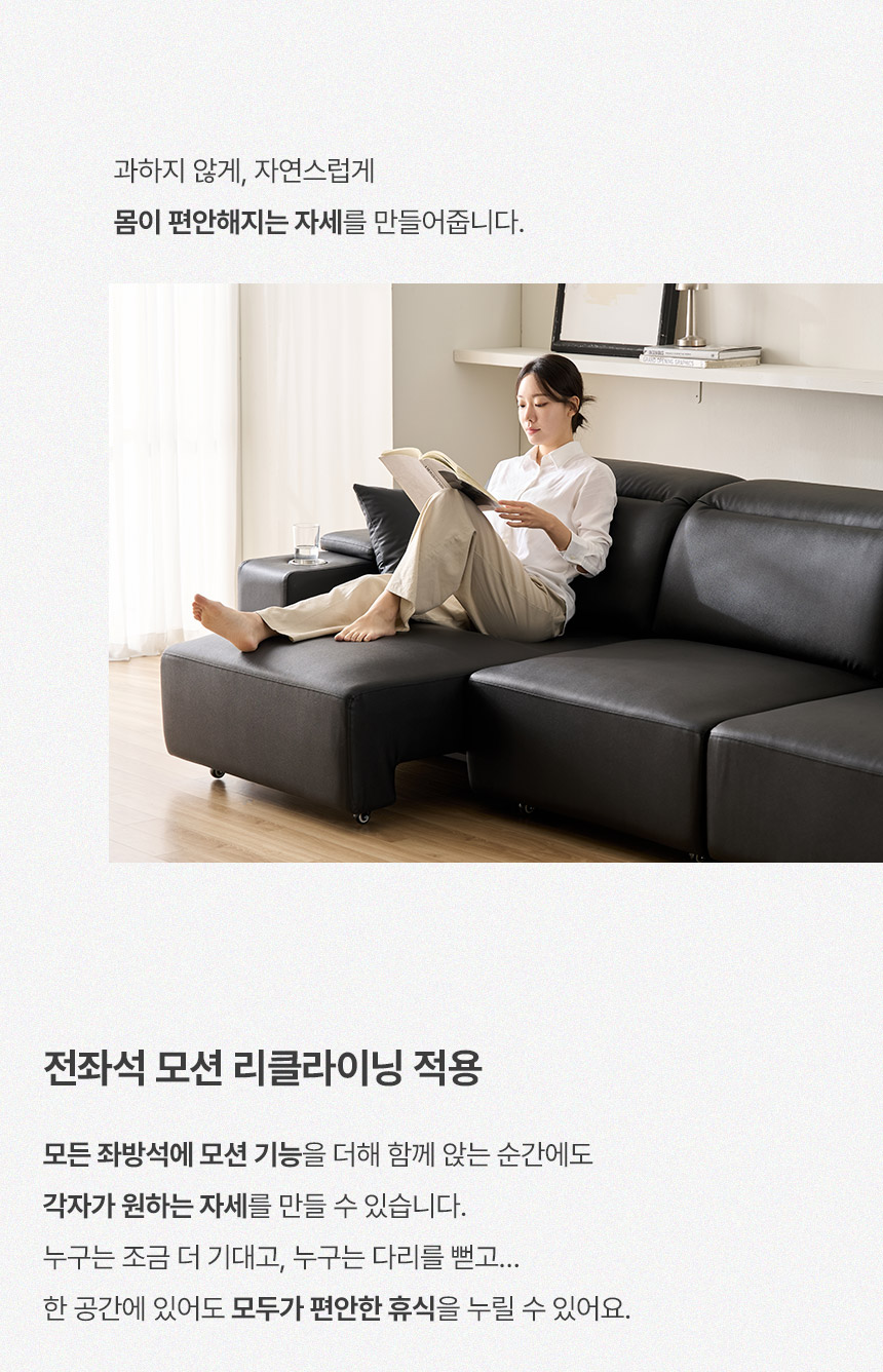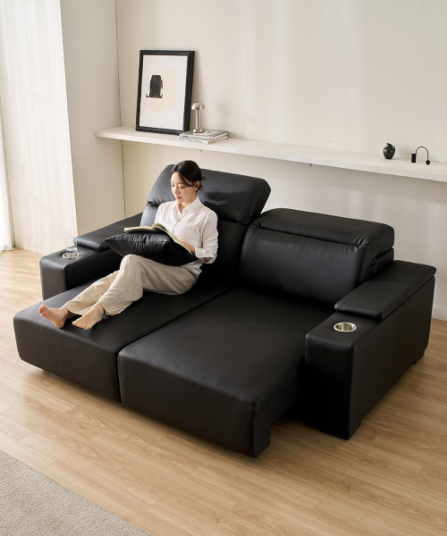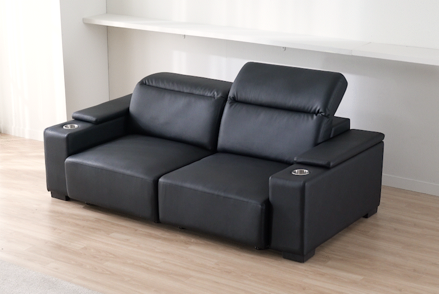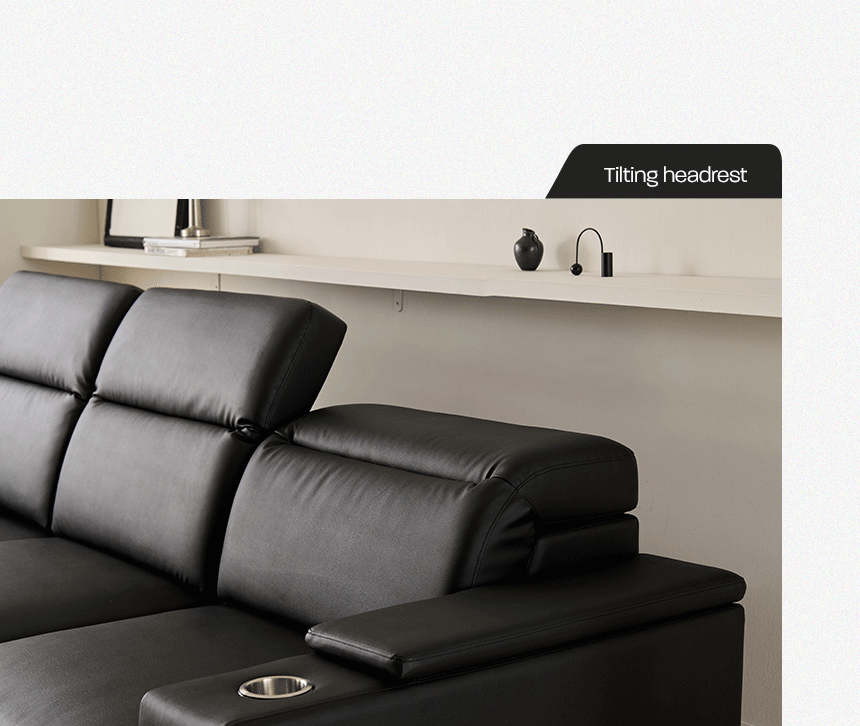 스테이온 헤드틸팅 모션 확장형 슬라이딩 3인용 가죽 리클라이너 소파(홈바형)