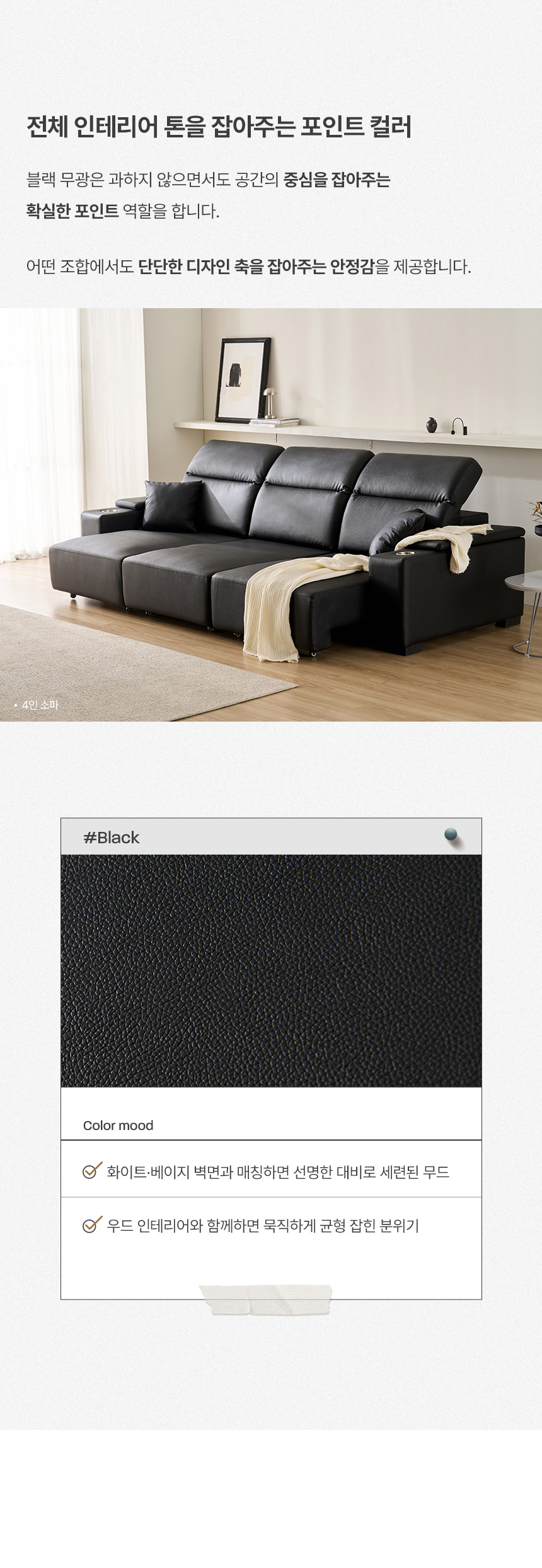 아르더 프리미엄 천연면피 소가죽 4인용 소파(스툴포함)