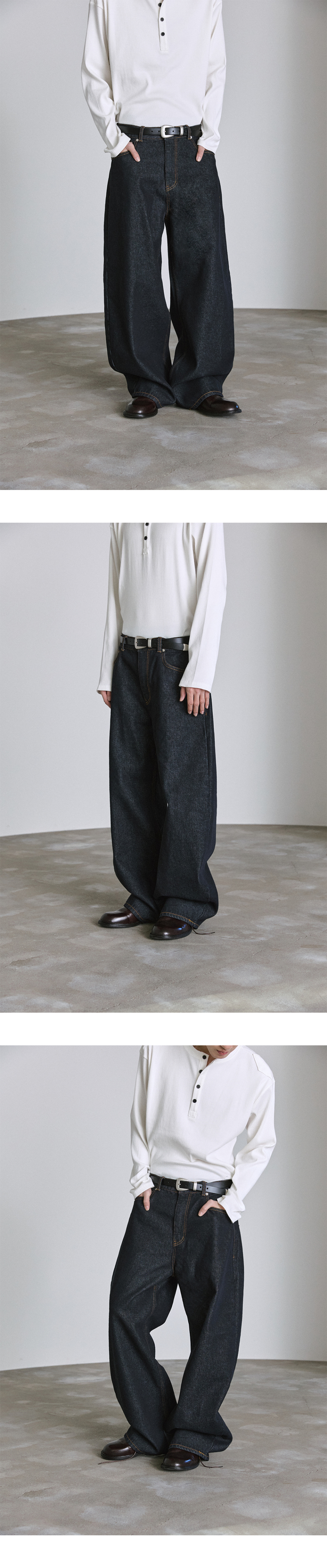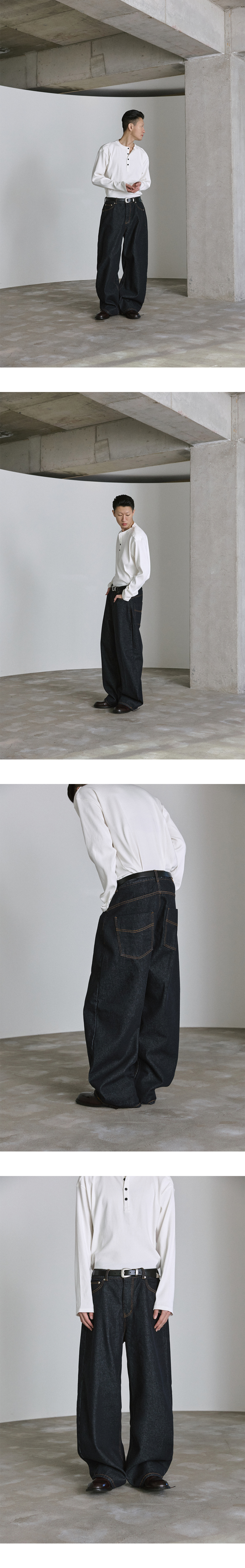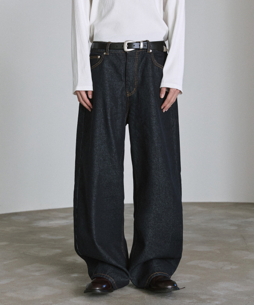 논페이드 생지 커브드 데님 - 딥블루