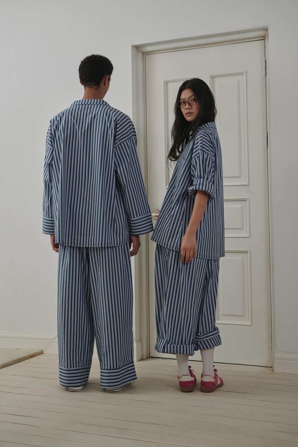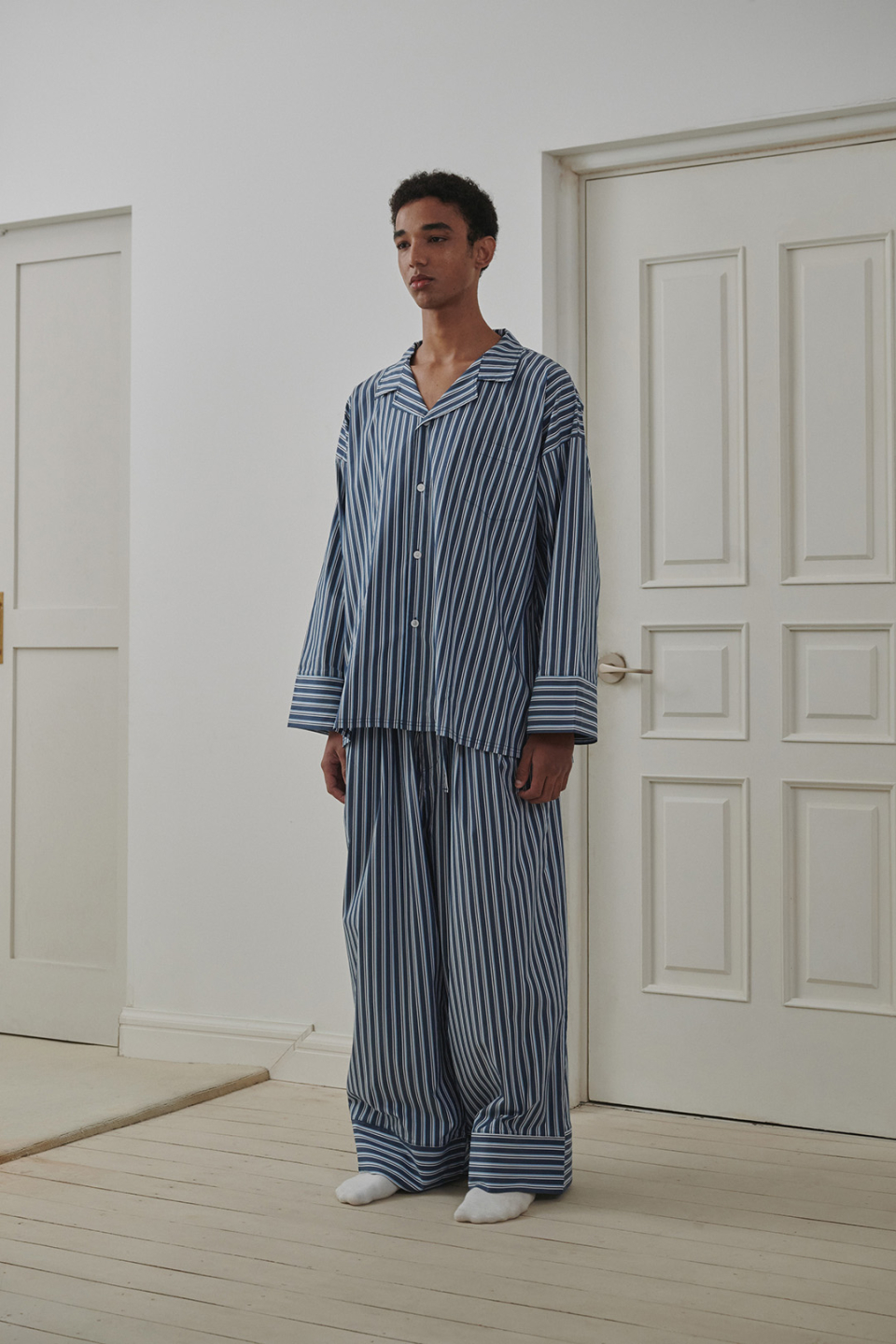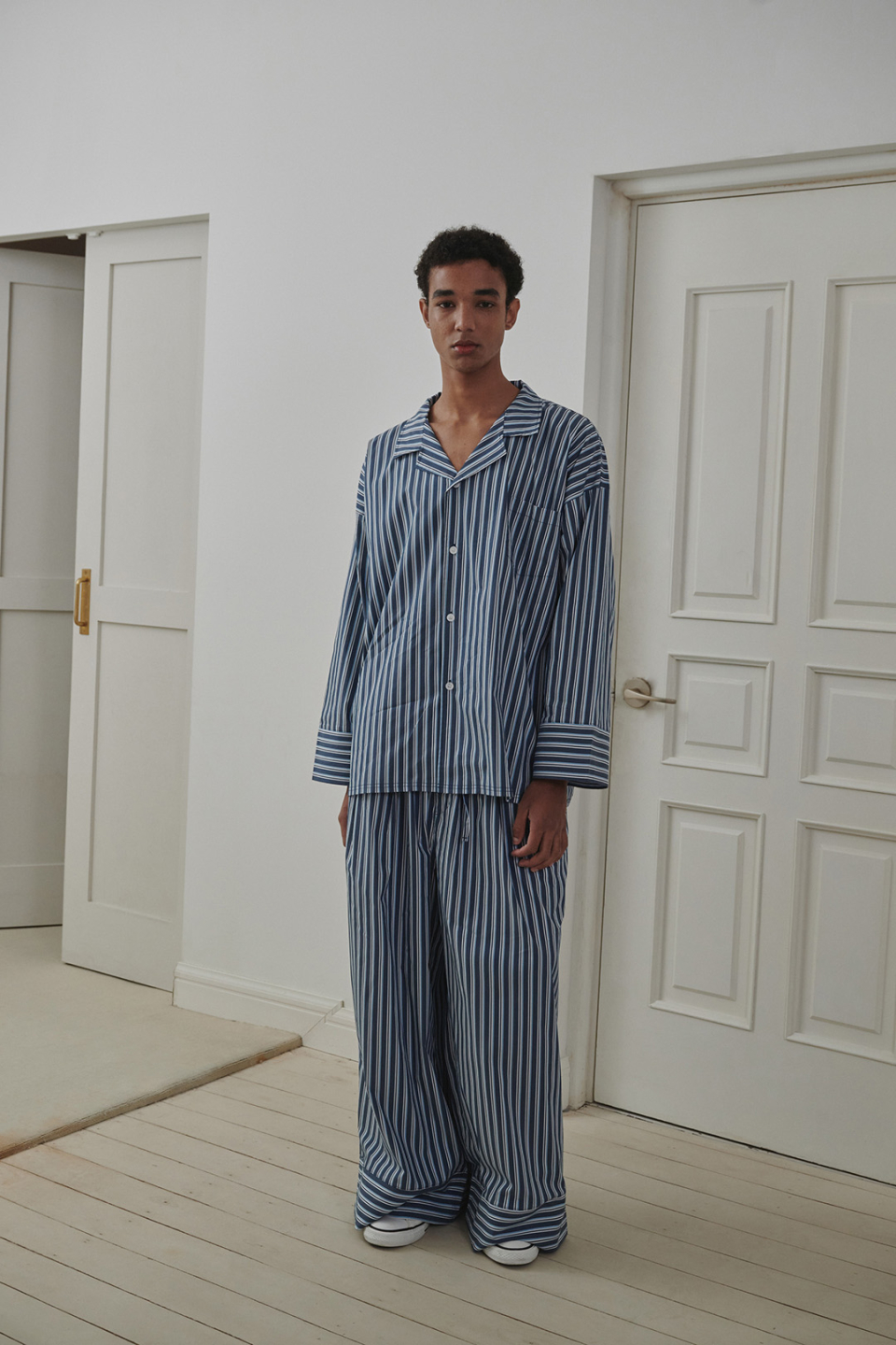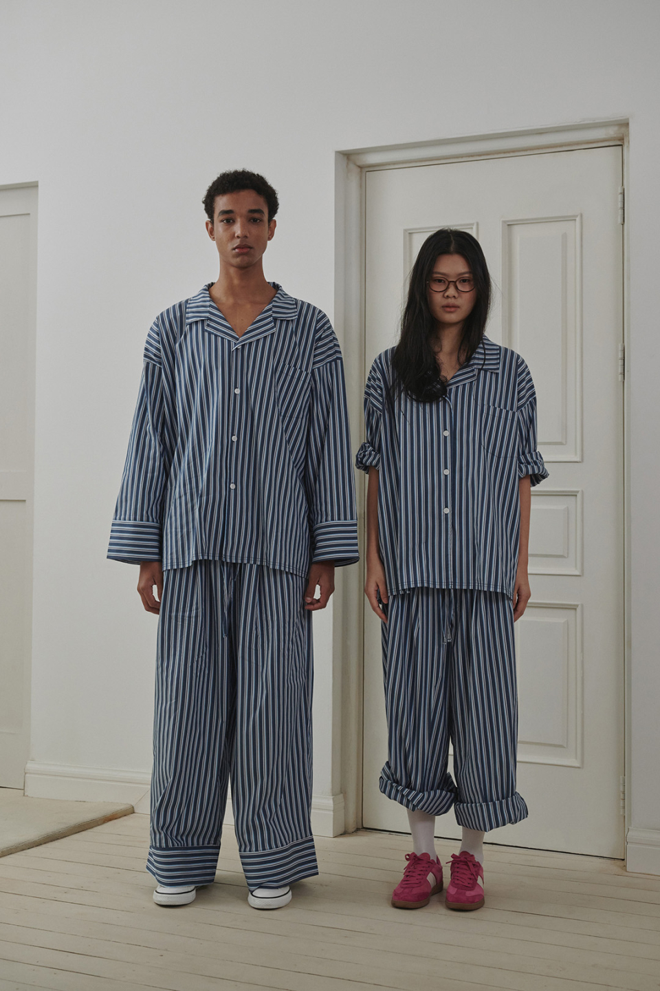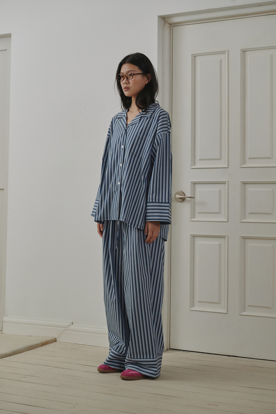 (uni)도미토리 시즌 스트라이프 파자마 블루베리