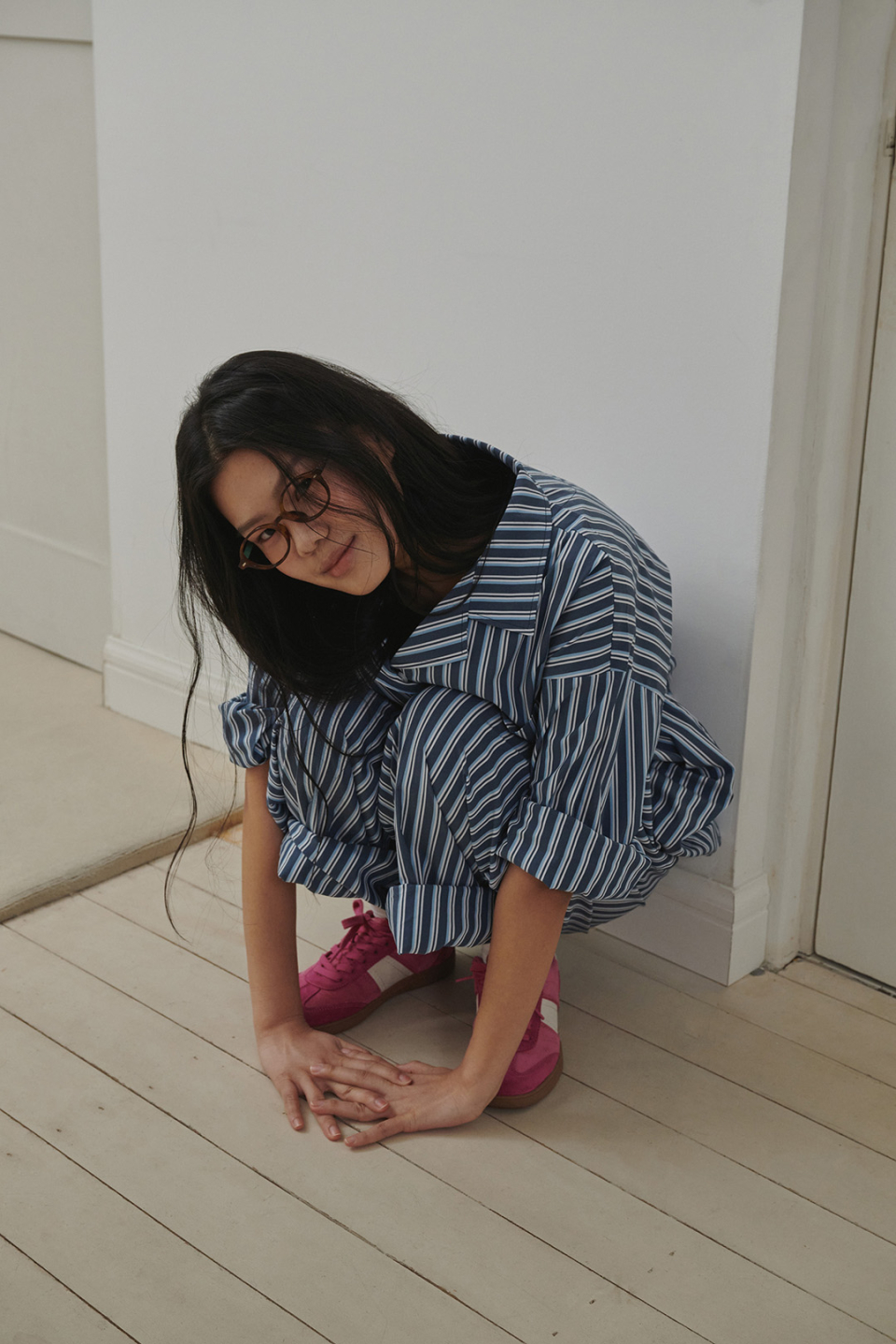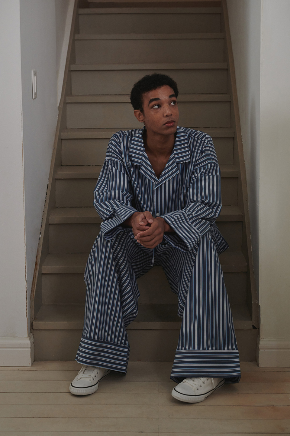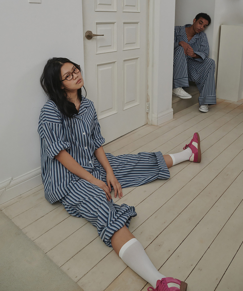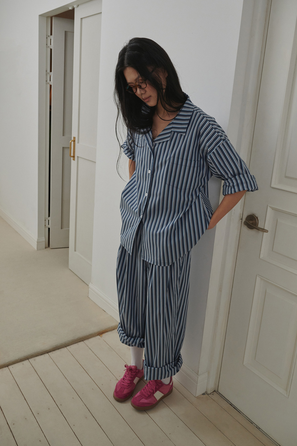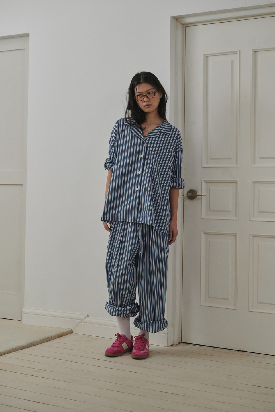 (uni)도미토리 시즌 스트라이프 파자마 블루베리