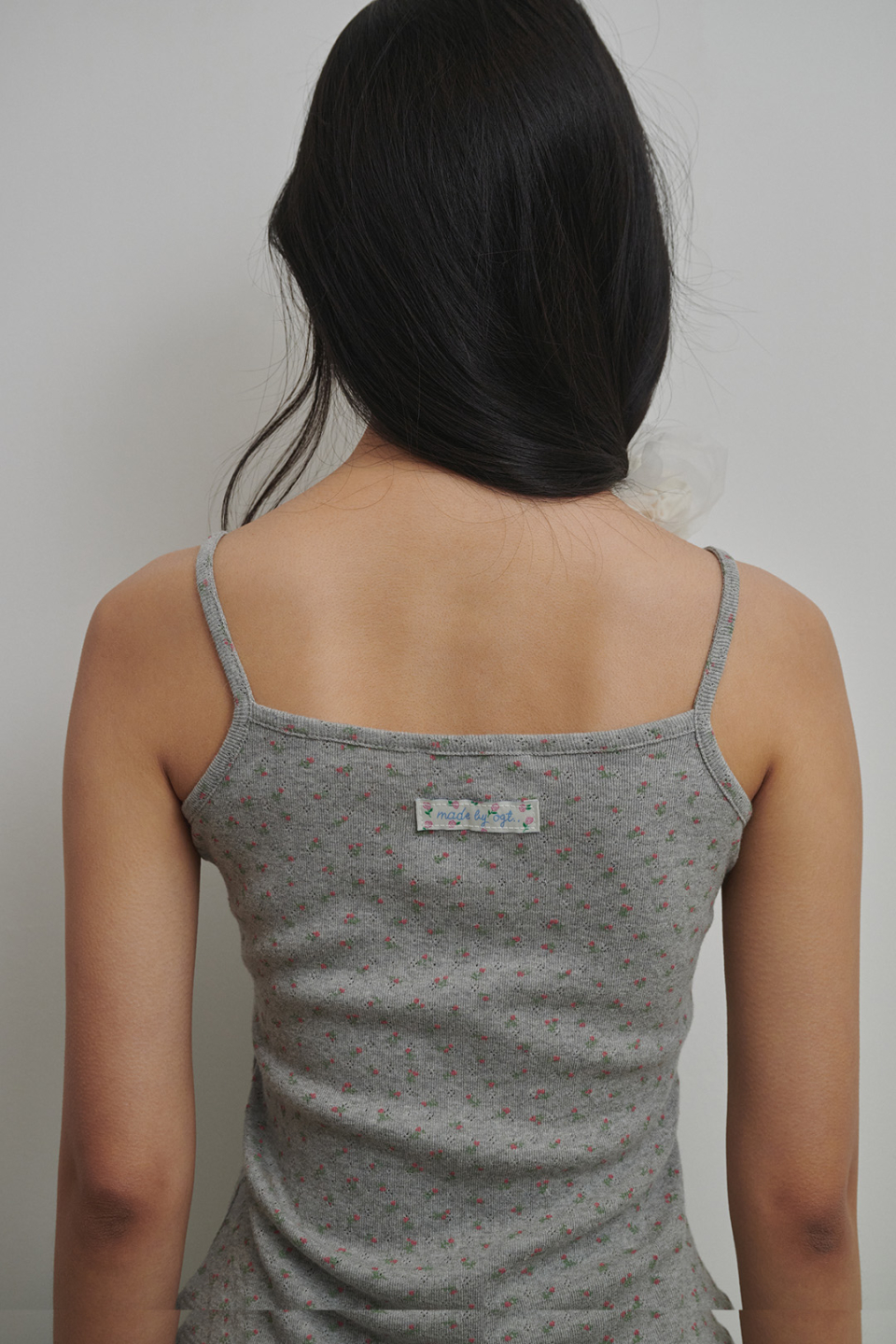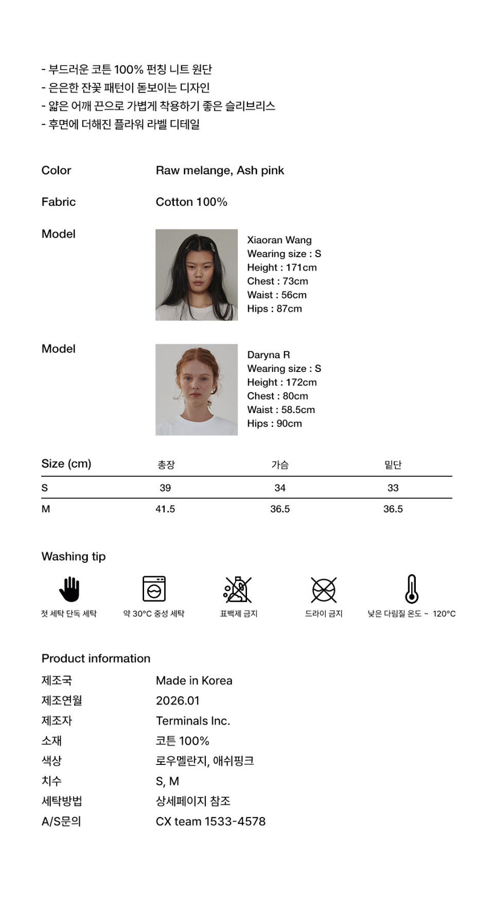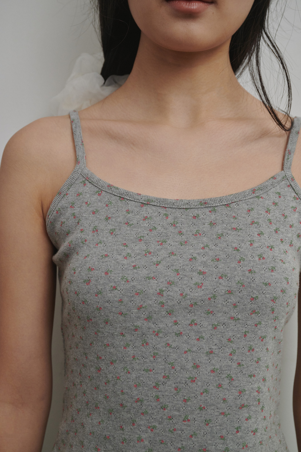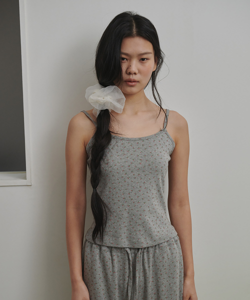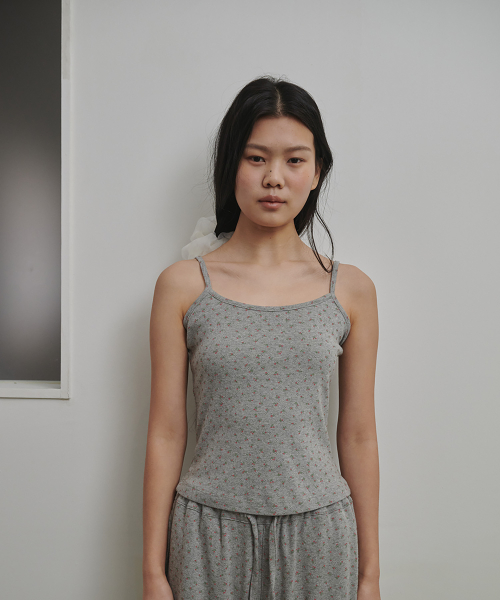 플로랄 펀칭니트 슬리브리스 애쉬핑크