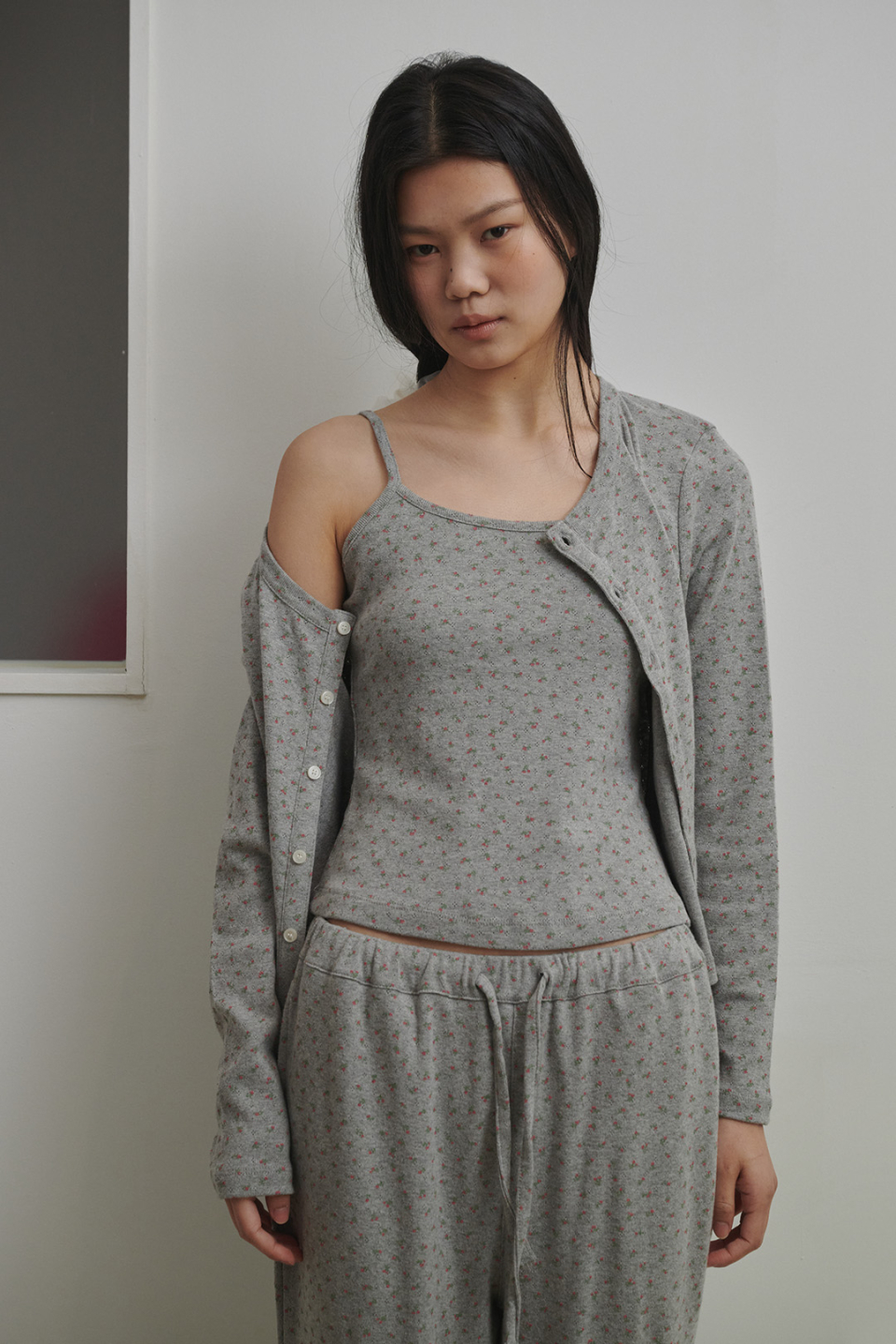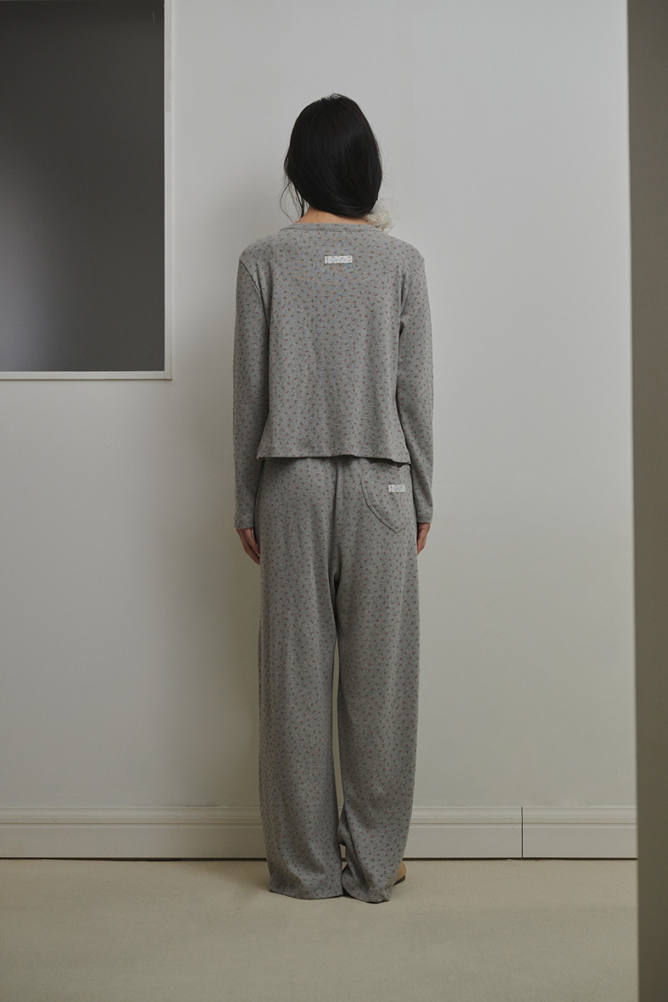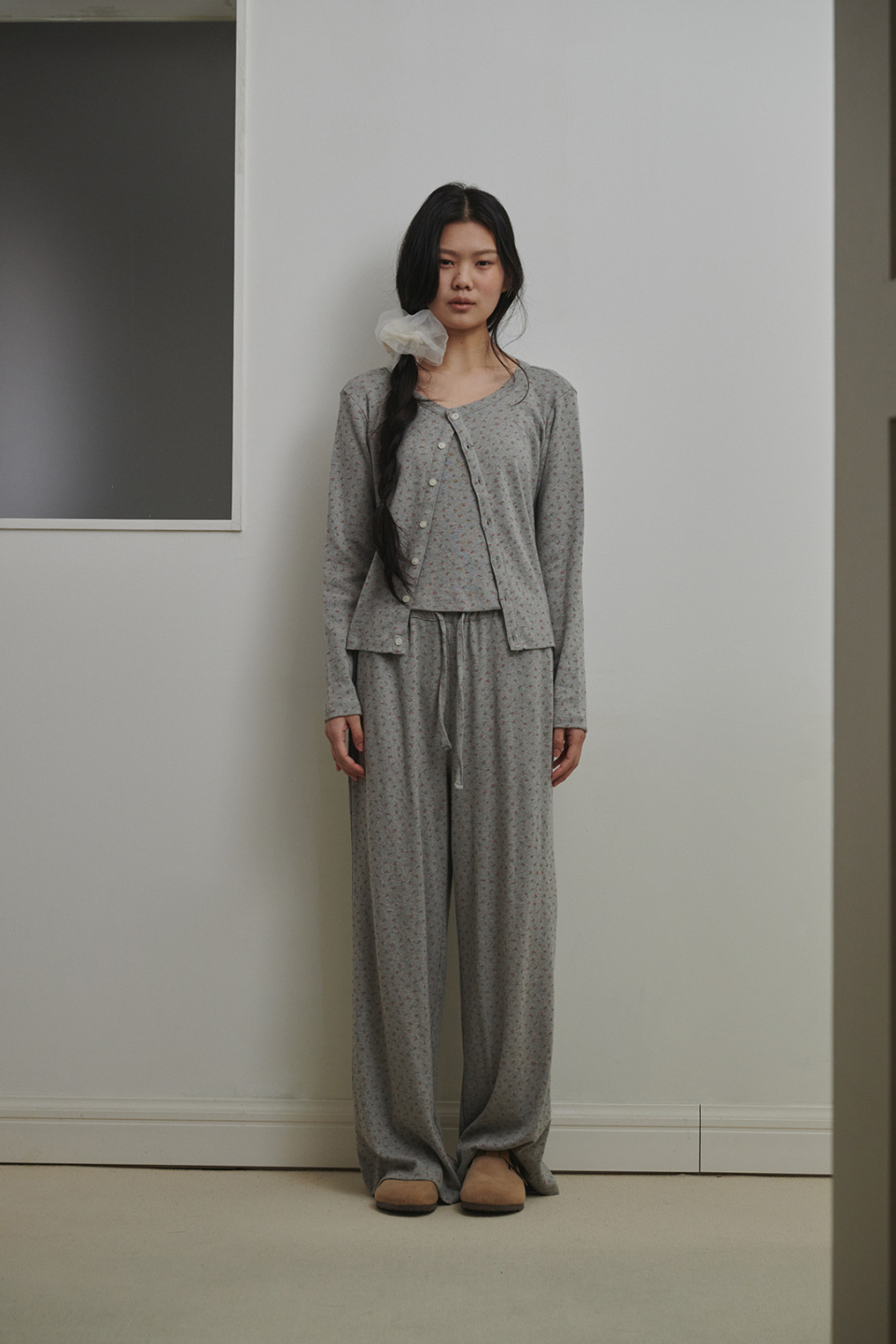 플로랄 펀칭니트 팬츠 애쉬핑크