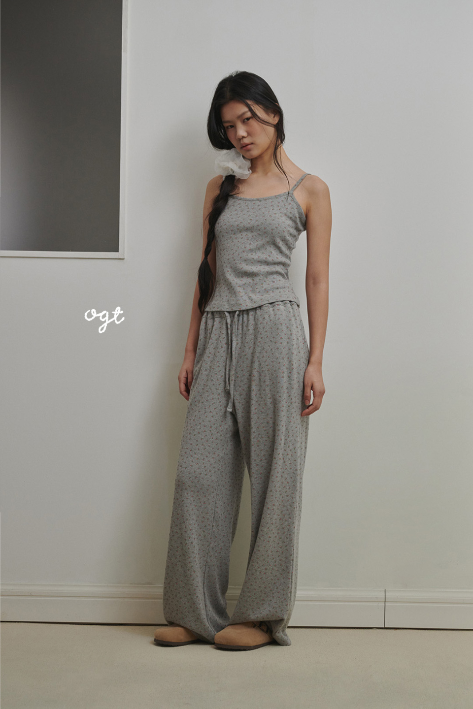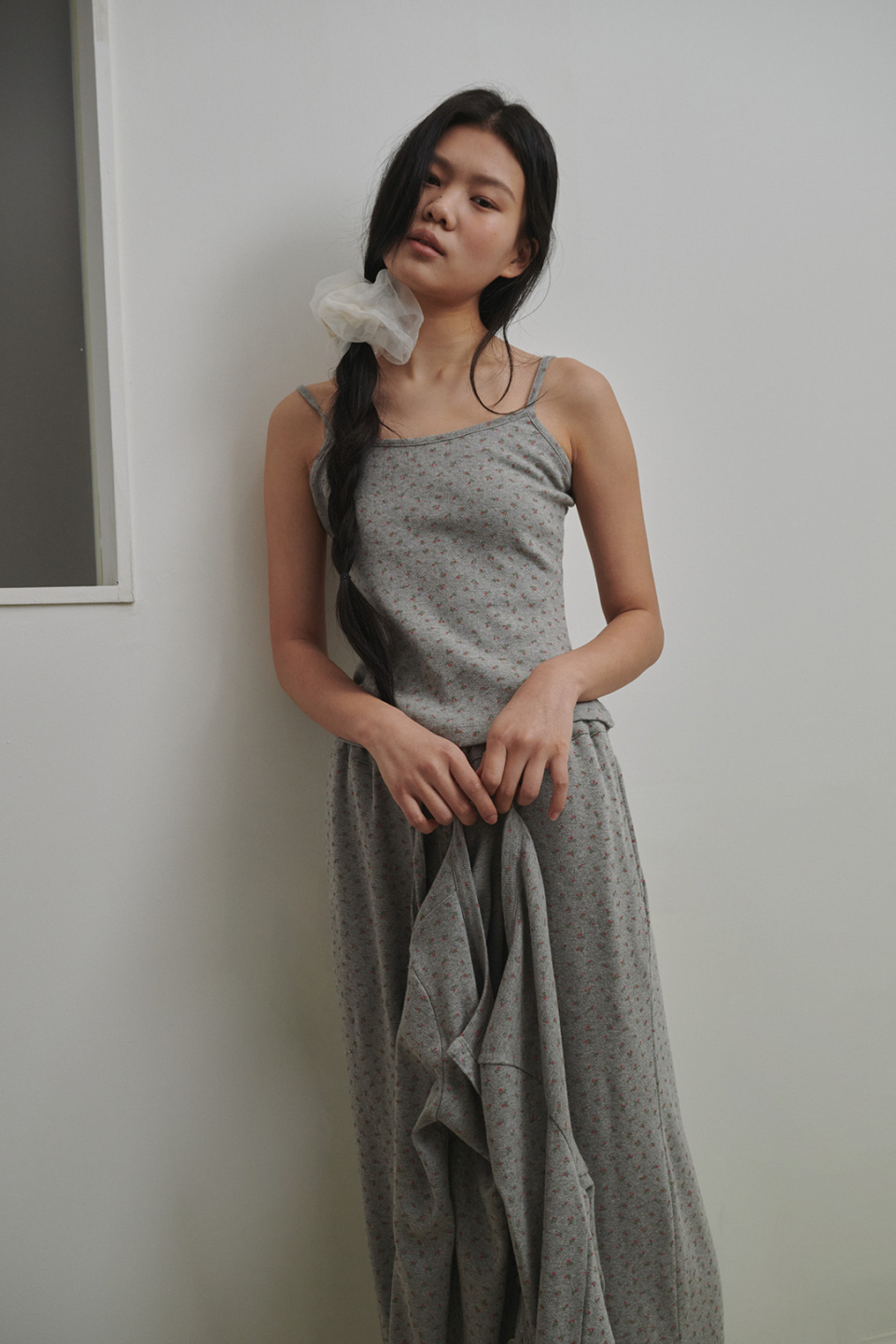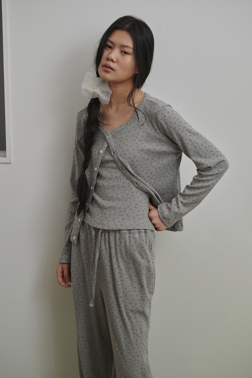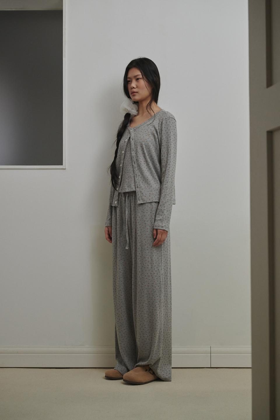 플로랄 펀칭니트 팬츠 애쉬핑크